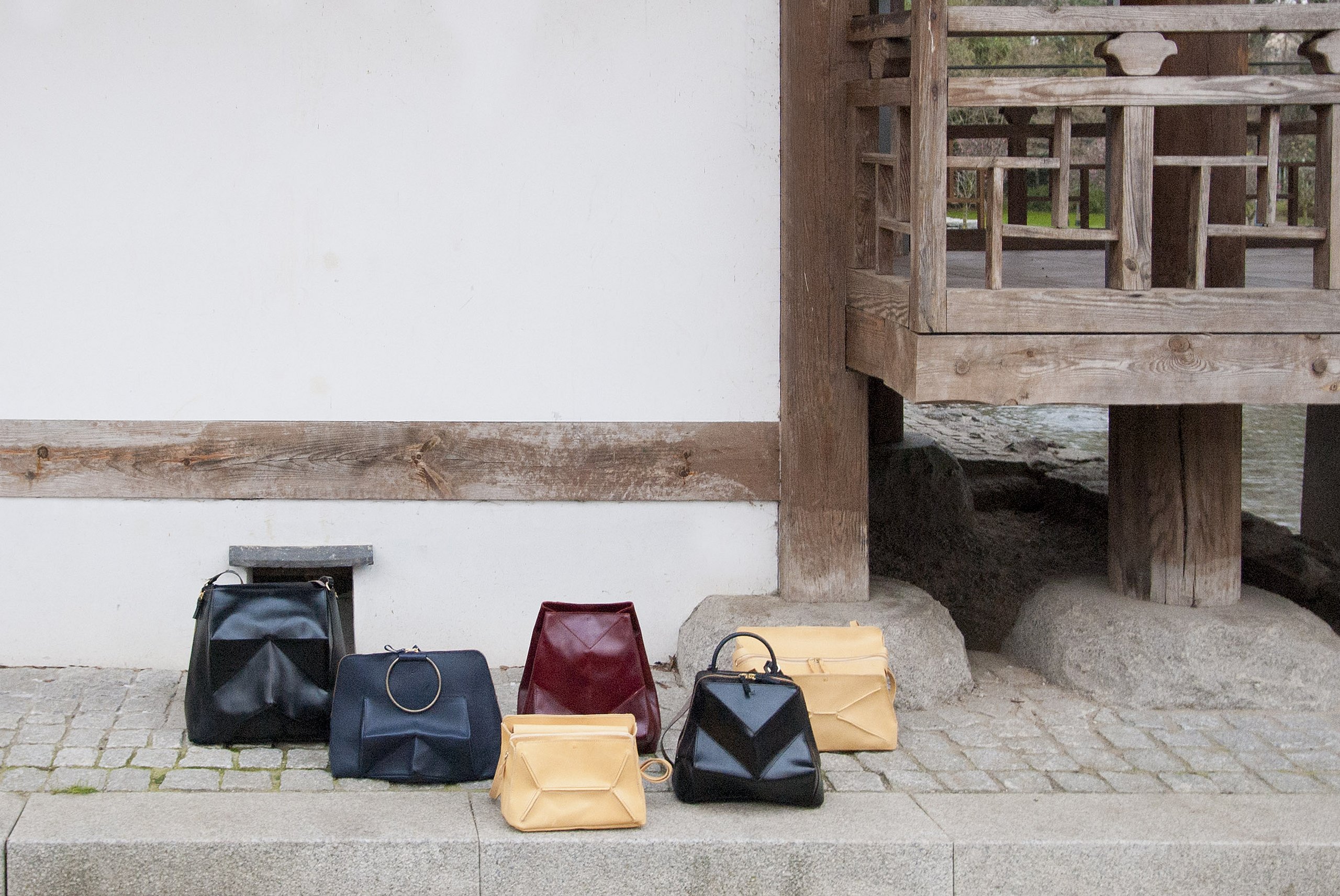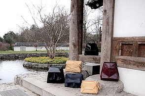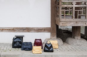 Der Begriff „Giwajip“ ist koreanisch und bedeutet „Haus mit Ziegeldach“ – der Titel beschreibt die Inspirationsquelle für die Abschlussarbeit und Taschenkollektion von Kyungmi Lee.