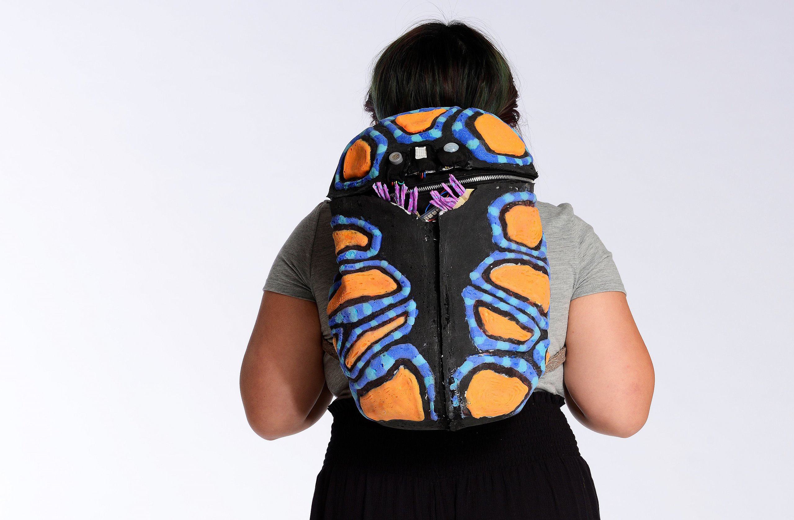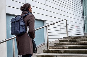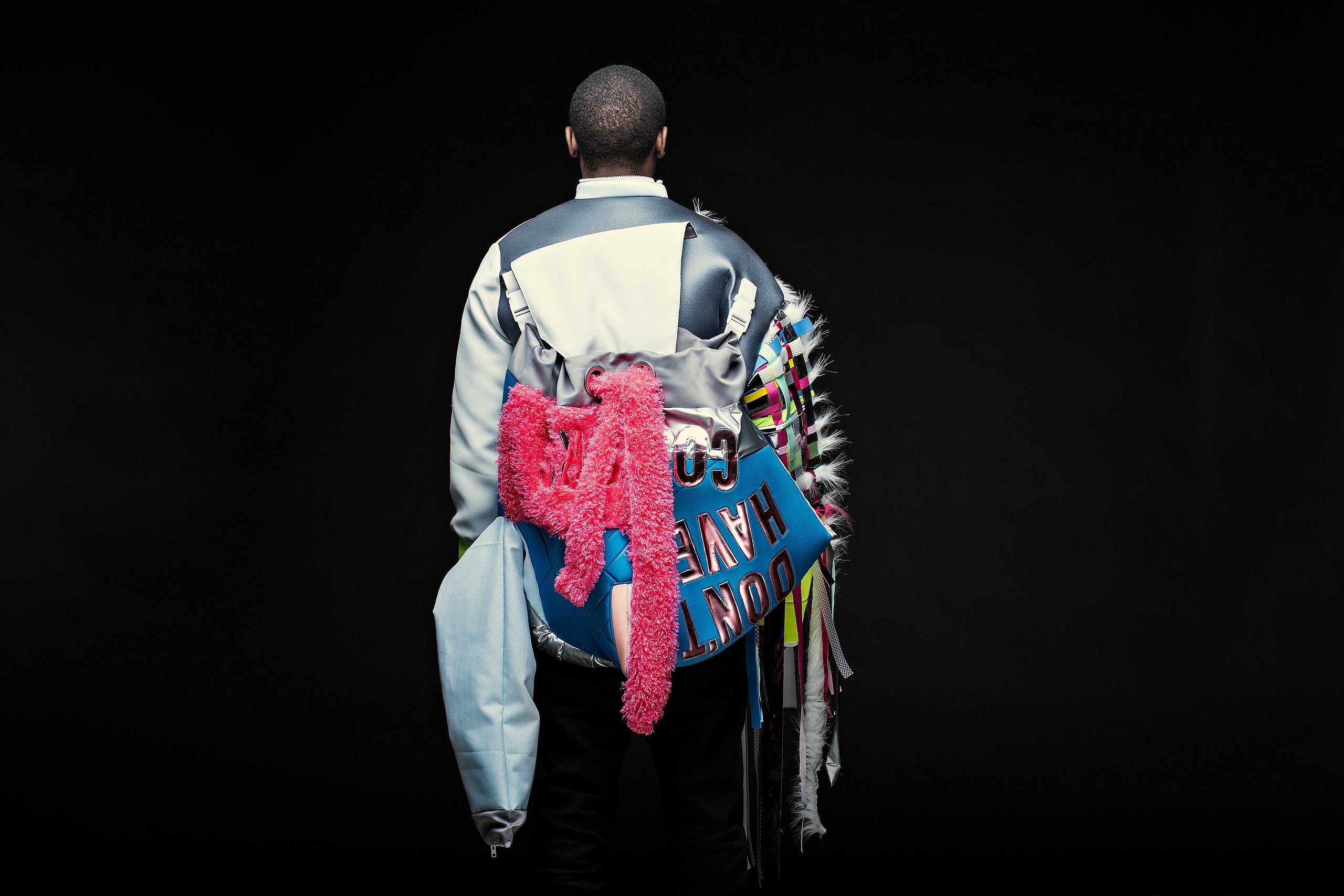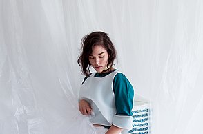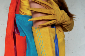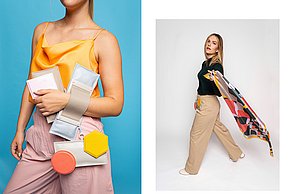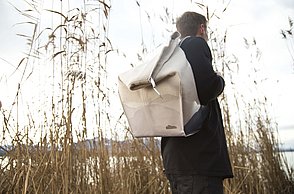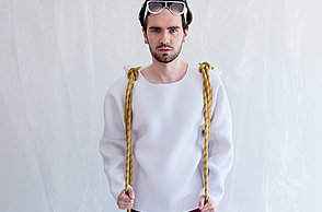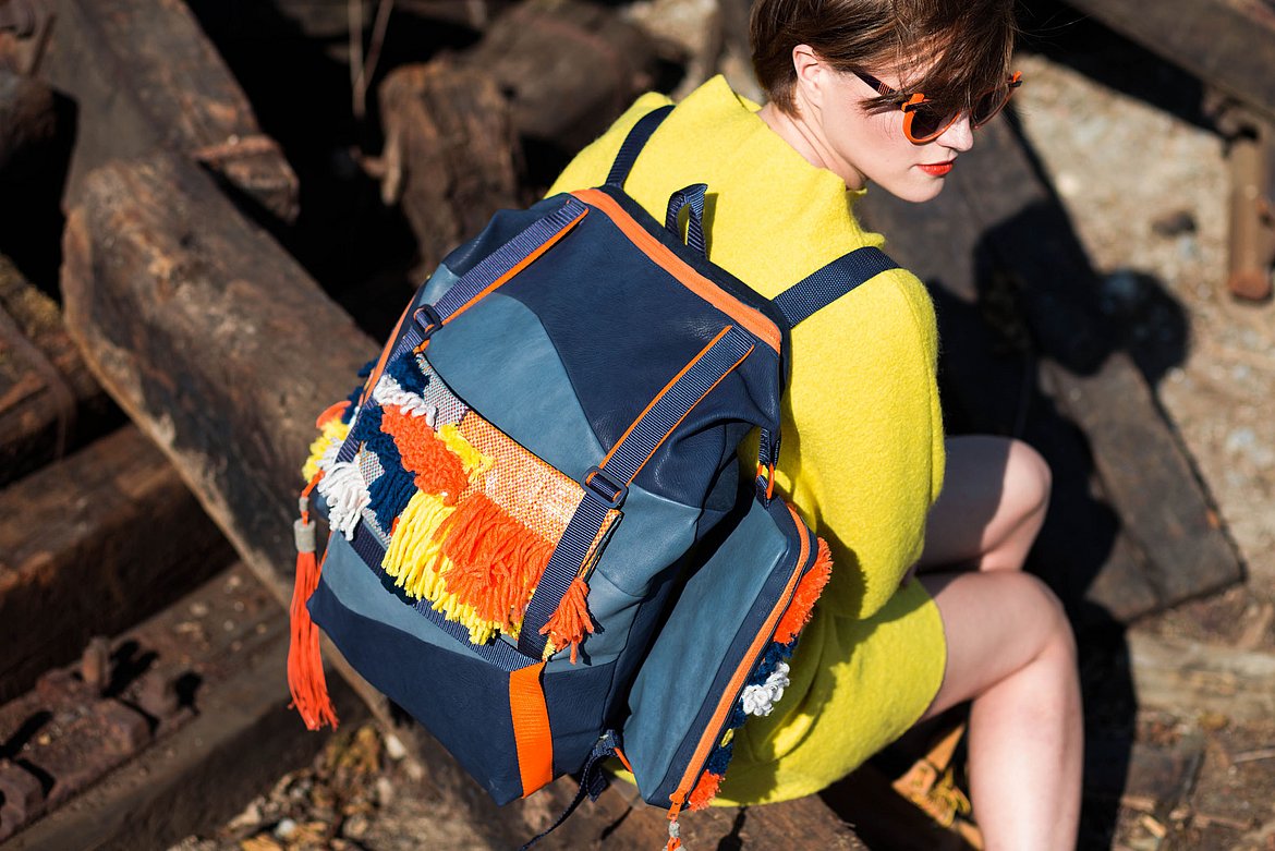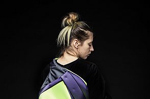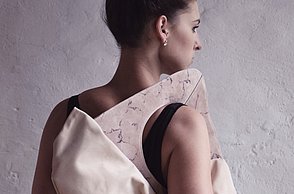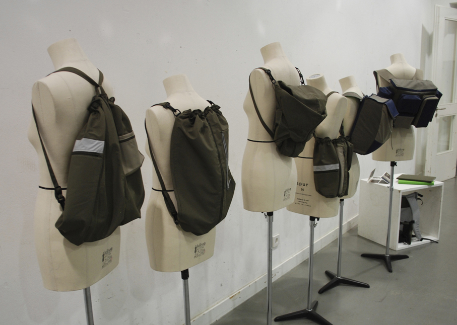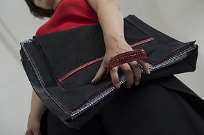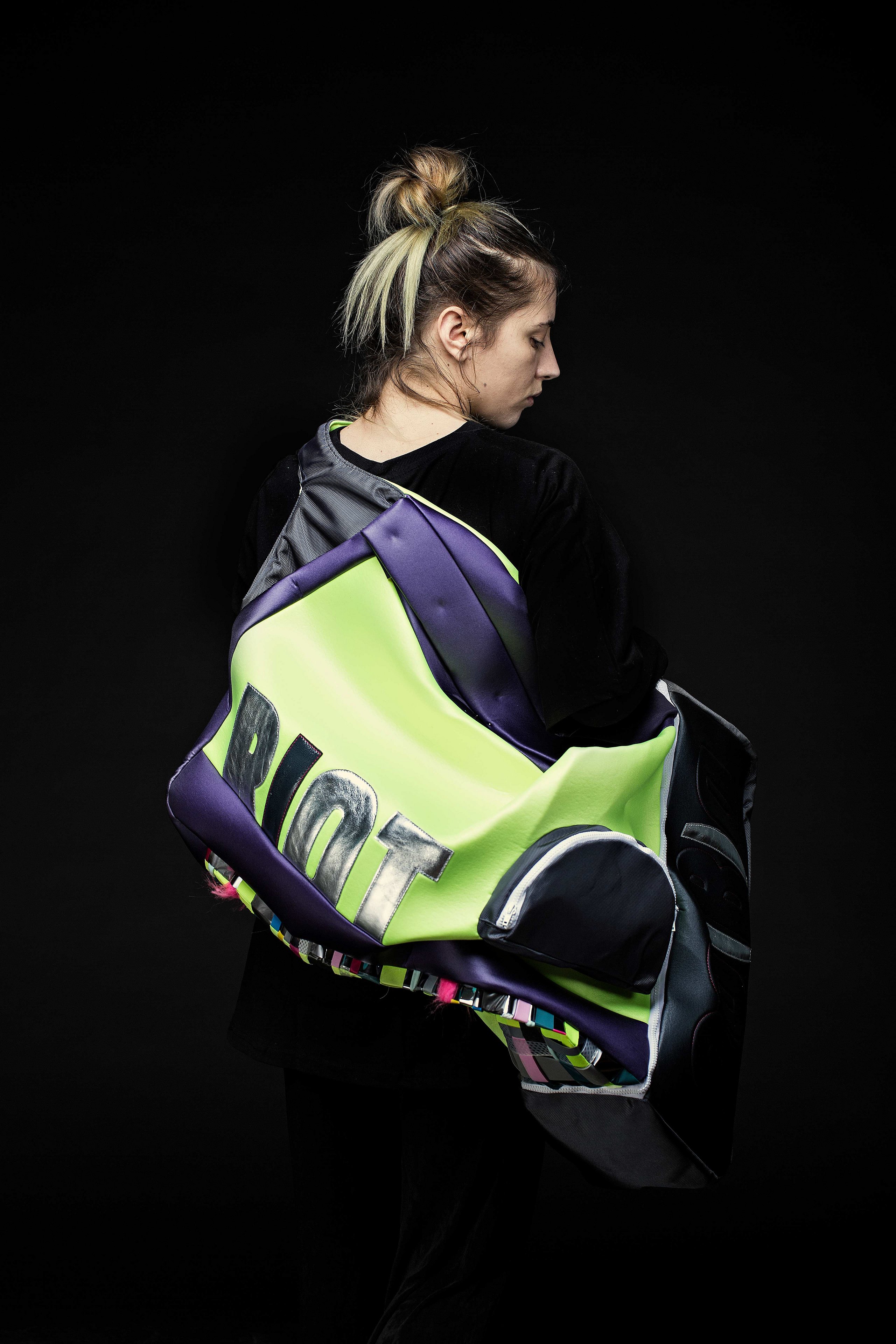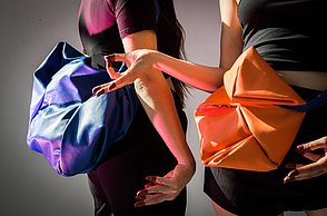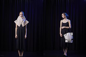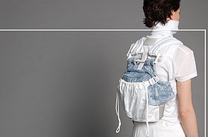 Krieg, Flucht und die Hoffnung auf ein neues Leben sind Themen, die die gebürtige Iranerin Mehri Majidi in ihrer Kollektion „HOFFNUNGSTRÄGER“ umsetzt. Sie entwickelte ein Taschenset, das sich je nach Bedarf zu einem Overall und Fluchtanzug kombinieren lässt. Aus den einzelnen Overall-Schnitteilen lassen sich durch Trennen und wieder Zusammensetzen diverse Taschen bilden. Mehri Majidi kam als Jugendliche nach Deutschland. „Bei meiner Biografie ist Mobilität ein durchgängiges Thema“, so die 26-Jährige.