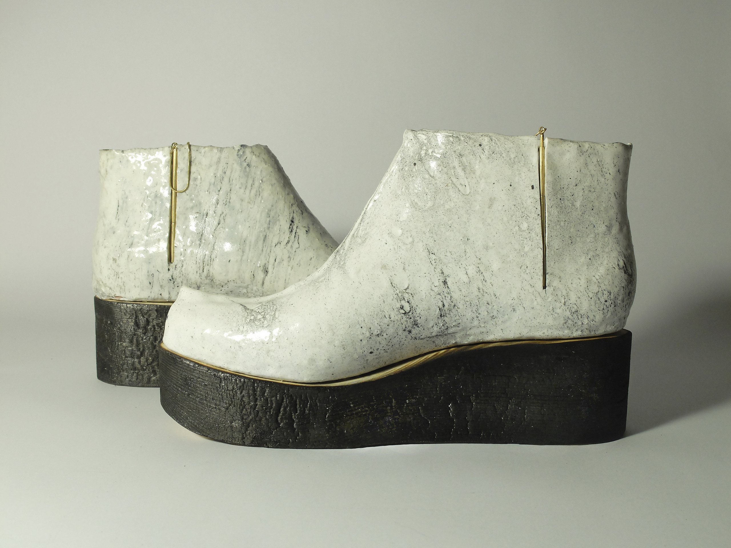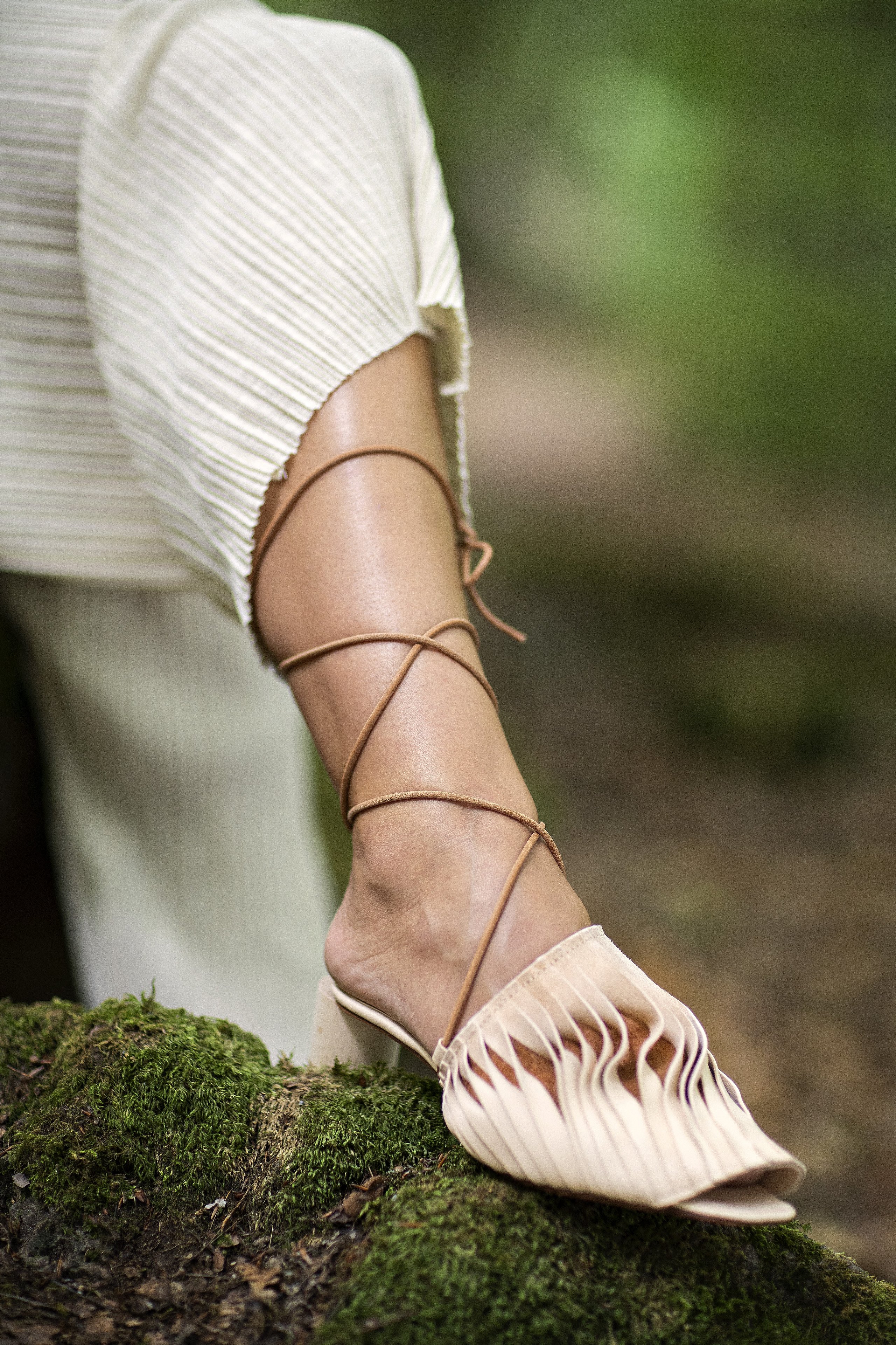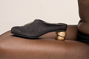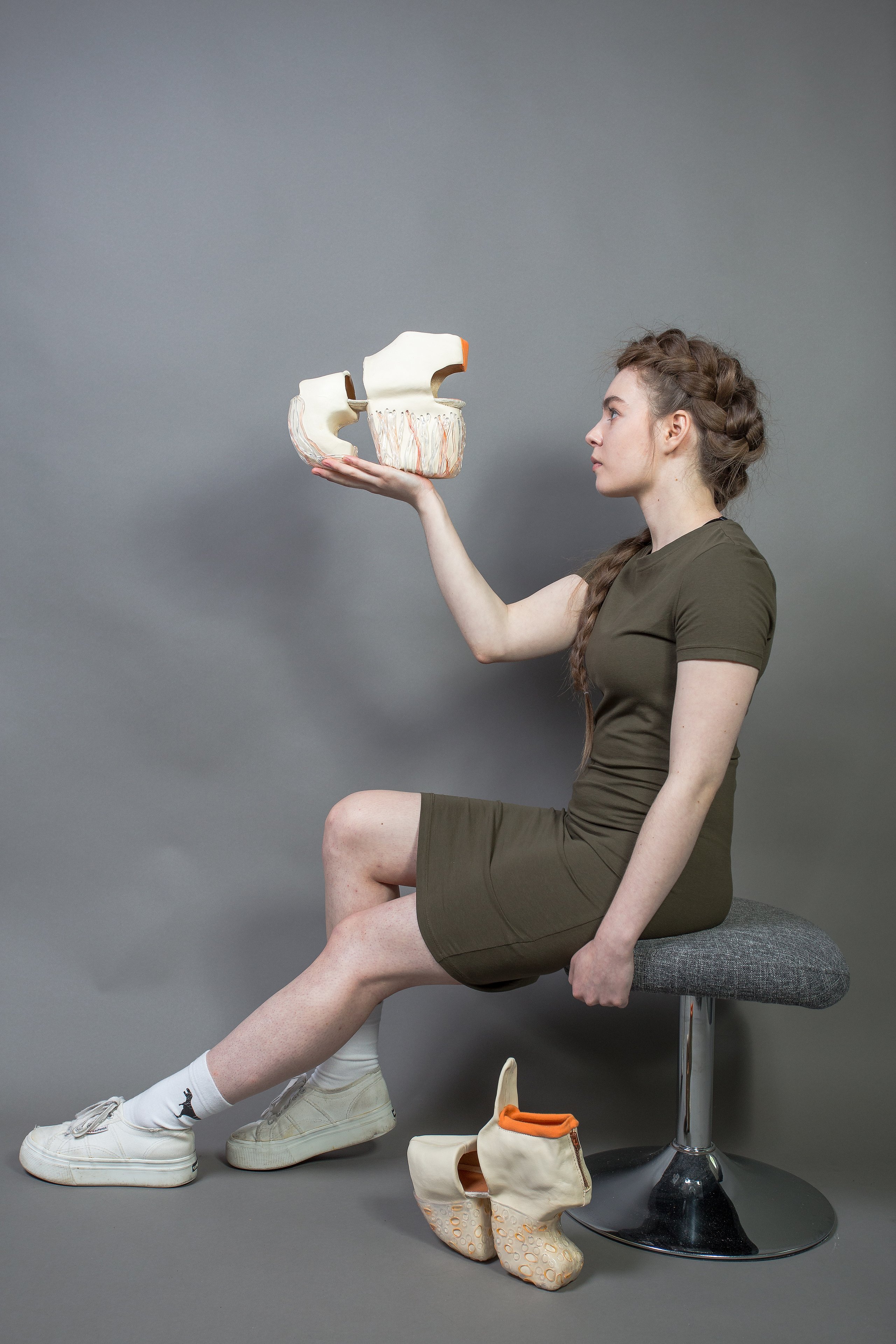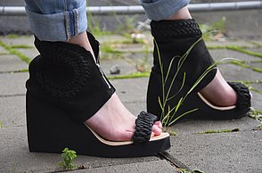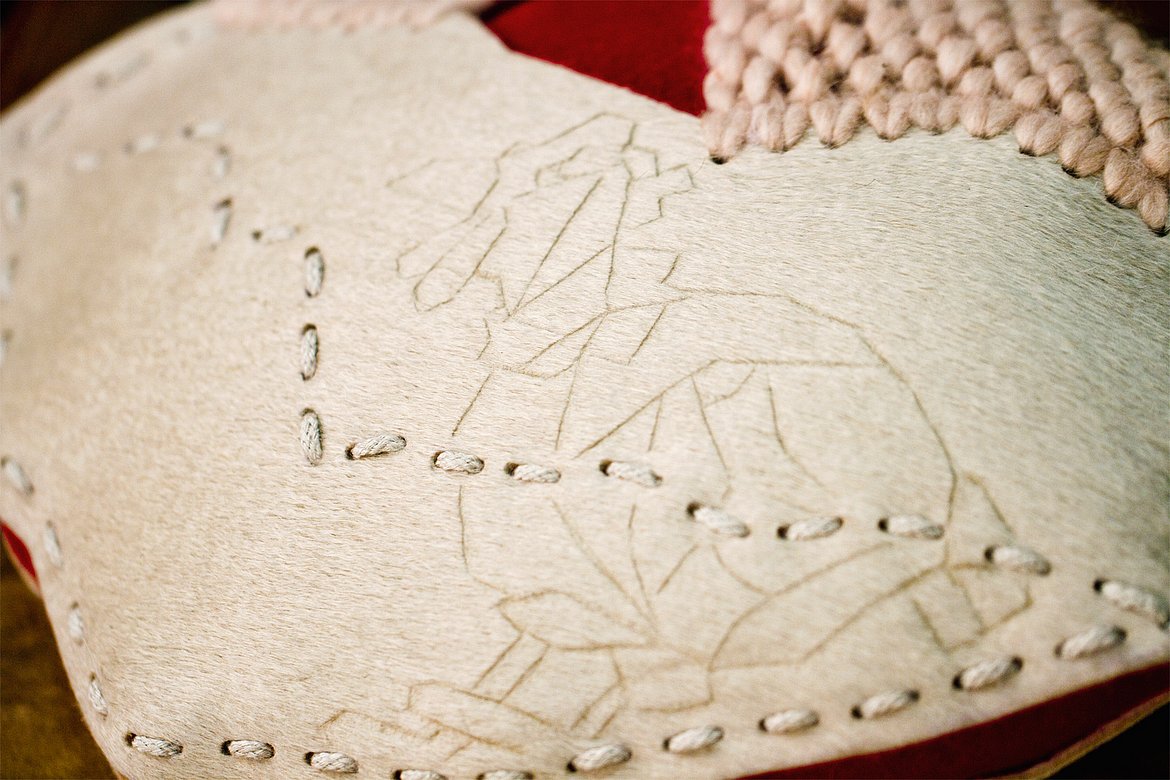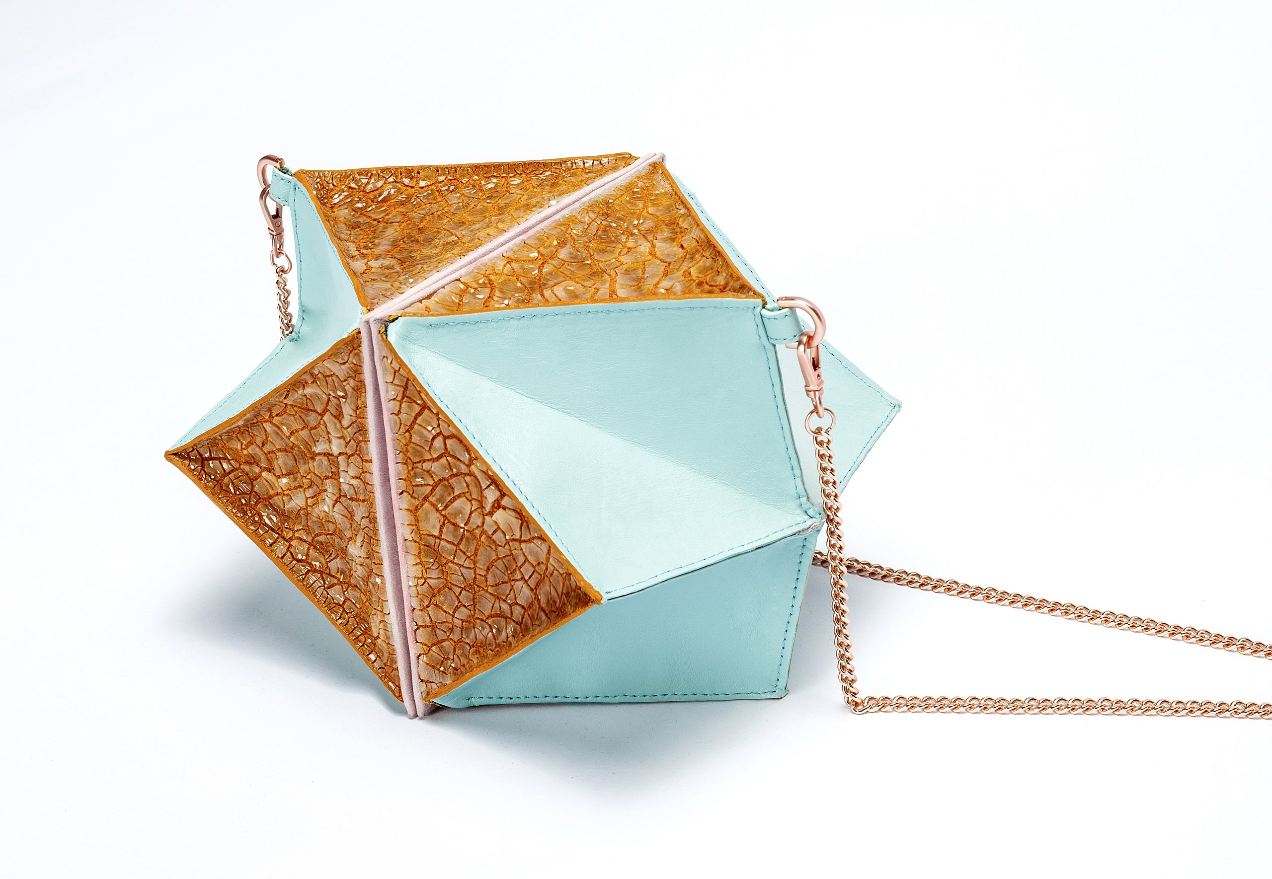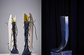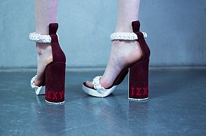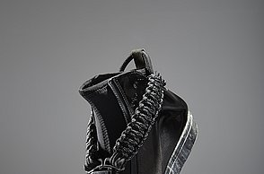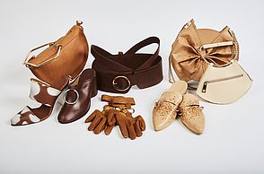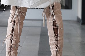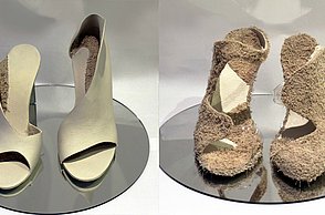 Alissa Sturm ließ das Material für ihre Schuhe und Taschen dagegen künstlich altern. Für ihre Kollektion „Decay“ – Englisch für Verfall – arbeitete sie Eisenpulver in das Leder ein und brachte es mit Hilfe einer Tinktur zum Rosten. „Mich hat die brachliegende Heilanstalt von Beelitz bei Berlin inspiriert. Die verblasste Schönheit strahlt einen ganz eigenen Reiz aus“, stellte die Absolventin fest.