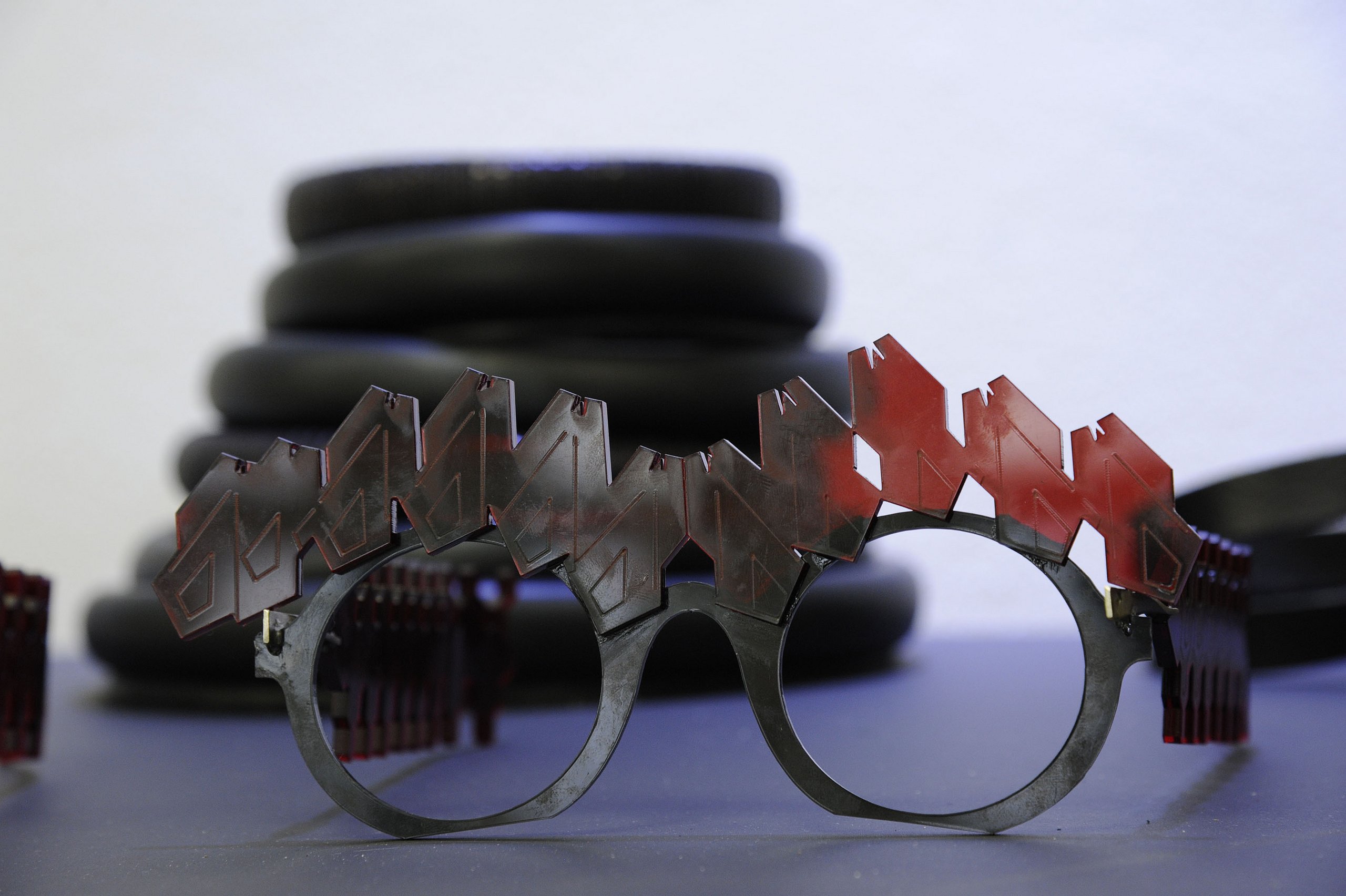 Anders, wie die Anderen. Was nach einem süddeutschen Grammatikfehler klingt, ist eine gestalterische Auseinandersetzung des Scheinwiderspruchs von Abgrenzung und Zugehörigkeit. Daraus entstand die konzeptionelle Brillenkollektion „Pi56“ aus Büffelleder und Messing. Die Objekte, die jeweils nach Paradoxa wie „der perfekte Fehler – die fehlerhafte Perfektion“ benannt sind, zeigen die Wechselwirkung von Titel zu Ding und hinterfragen durch ihre eingeschränkte Funktion die Definition der Brille.