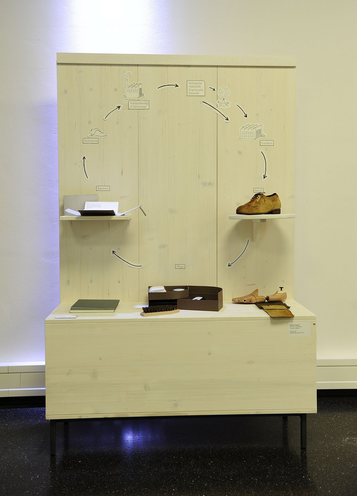 Massenkonsum, wie er in den Industrienationen stattfindet und die damit einhergehenden Folgen, waren einer der Auslöser für die Abschlussarbeit „Zeit zum Umdenken – time to rethink.“ Es wurde ein Konzept entwickelt, das sich hauptsächlich auf den Thesen des cradle to cradlte Systems stützt, welches von Michael Braungart und William McDonough ins Leben gerufen wurde. Als Designer kann man die Verantwortung für die zu entwickelnden Produkte übernehmen und Produkte schaffen, die nicht innerhalb kürzester Zeit entweder aus der Mode kommen oder kaputt gehen. Wichtig hierbei sind auch die Inhaltsstoffe der verwendeten Materialen. Es geht um Schaffung von Kreisläufen, in denen die Produkte zirkulieren und nicht nach kurzem Gebrauch als Müll verbrannt werden, oder noch schlimmer in die Umwelt gelangen, wo sie zur Gefahr für Tier und Natur werden. Darüber hinaus wurde sich mit verschiedenen Möglichkeiten für ein nachhaltiges ökologisches, soziales und trotzem ökonomisches Handeln beschäftigt.