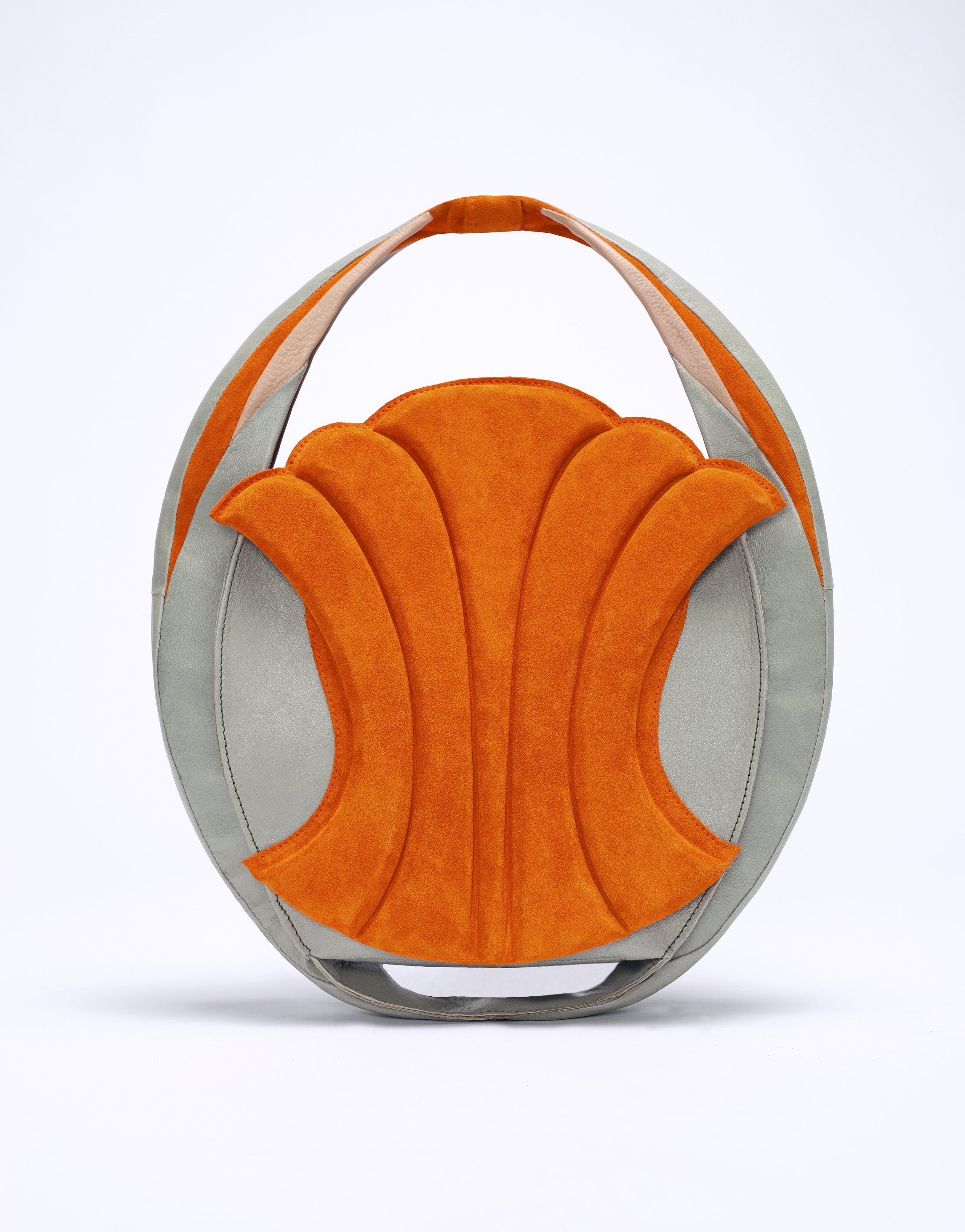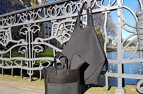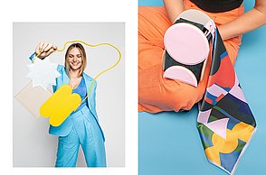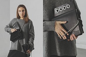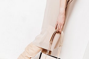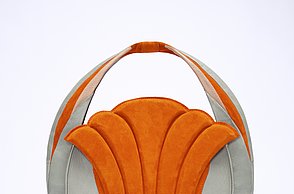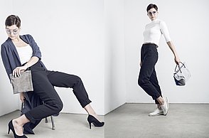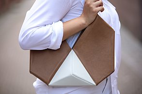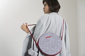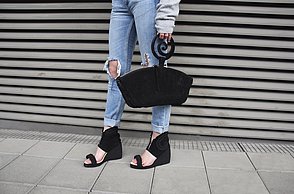 Simple und doch monumentale Formen wie Dreieck, Kreis oder Quadrat bestimmen die Abschlusskollektion von Julia Döring. „the simple expression of complex thougts“ ist dem Stil des Bauhauses entlehnt. Vor dem Entwerfen ihrer Taschen, Schuhe und Schals recherchierte Julia Döring in den Archiven von Weimar, Dessau und Berlin. Dass Bauhauslegenden wie Marcel Breuer und Mies van der Rohe regional produzierten, spricht die 24-jährige Nürnbergerin auch heute noch an. „Die Art und Weise der Produktion ist mir wichtig, wir haben im Studium gelernt, hochwertig und nachhaltig zu arbeiten.“