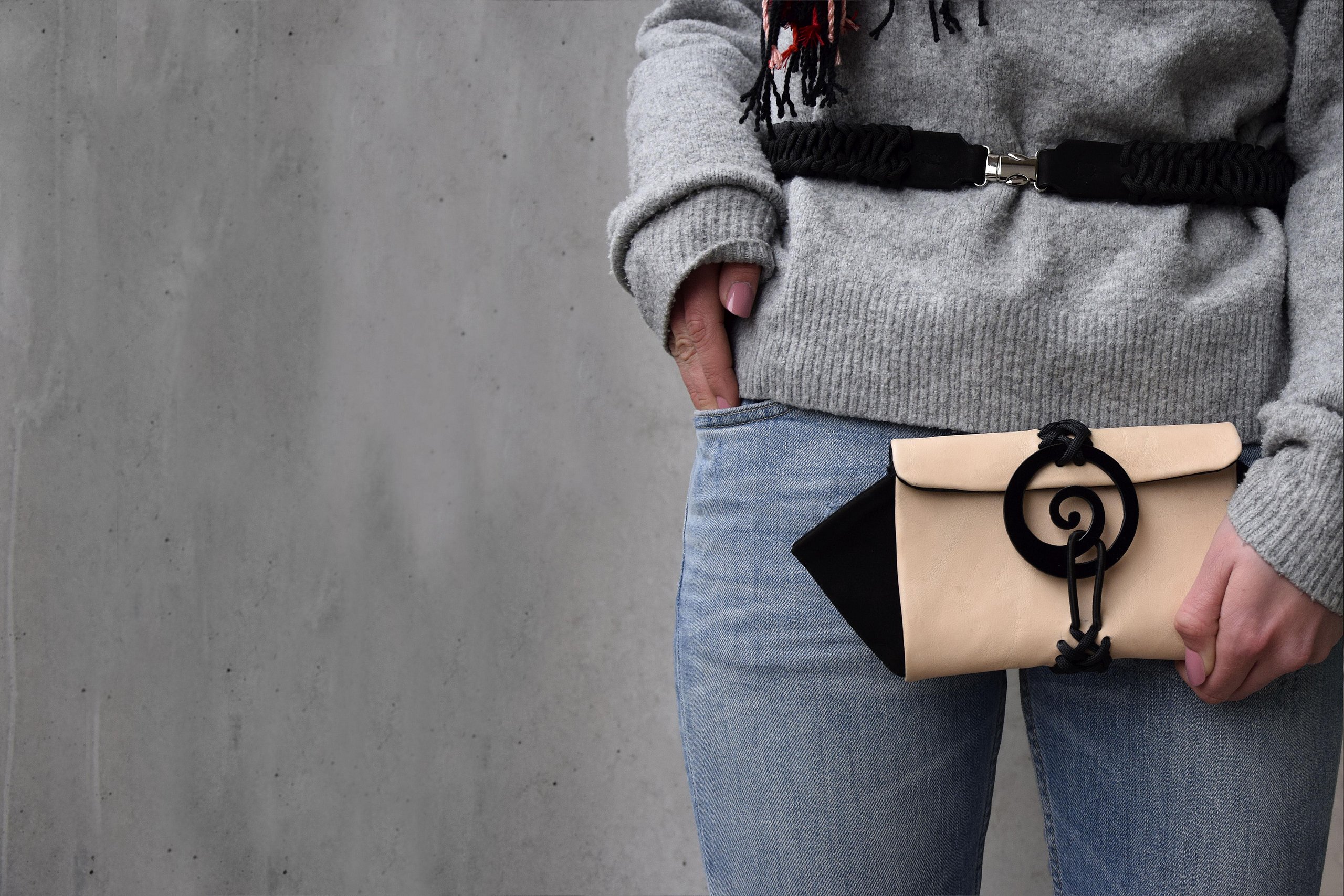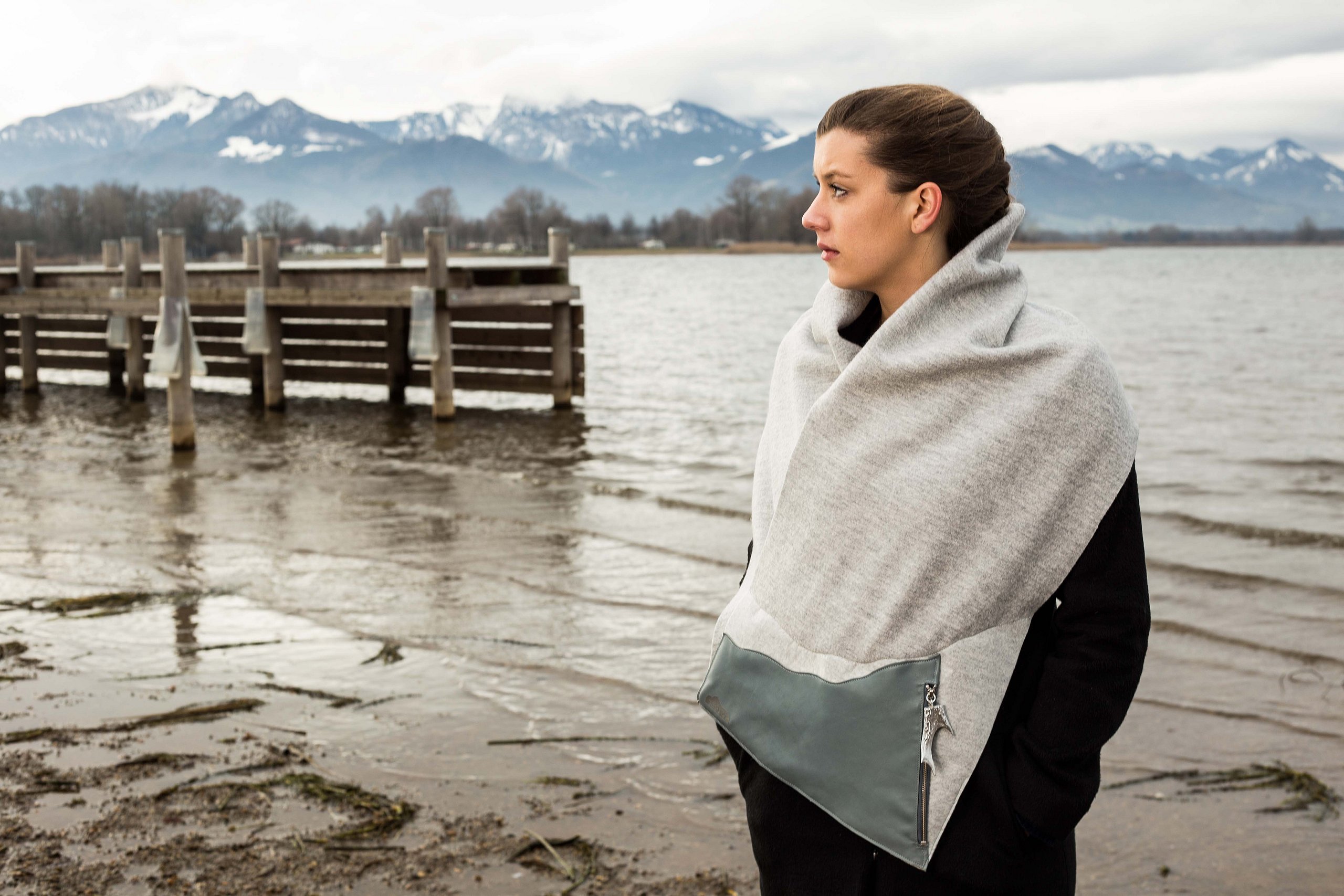 Auch der Zugehörigkeitsaspekt zeigt sich darin, dass z.B. durch Spiegelung der Schnitte aus den Einzelteilen Partner-Accessoires werden. Durch die für Oberbayern typischen Materialien Walkstoff und Hirschhorn bekommt die Kollektion einen authentischen Charakter. Traditionelle Elemente werden mit modernen kombiniert und dadurch neu interpretiert, wodurch ein spannender Stil entsteht.