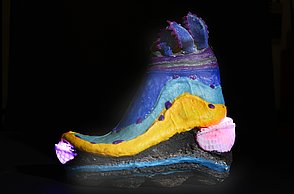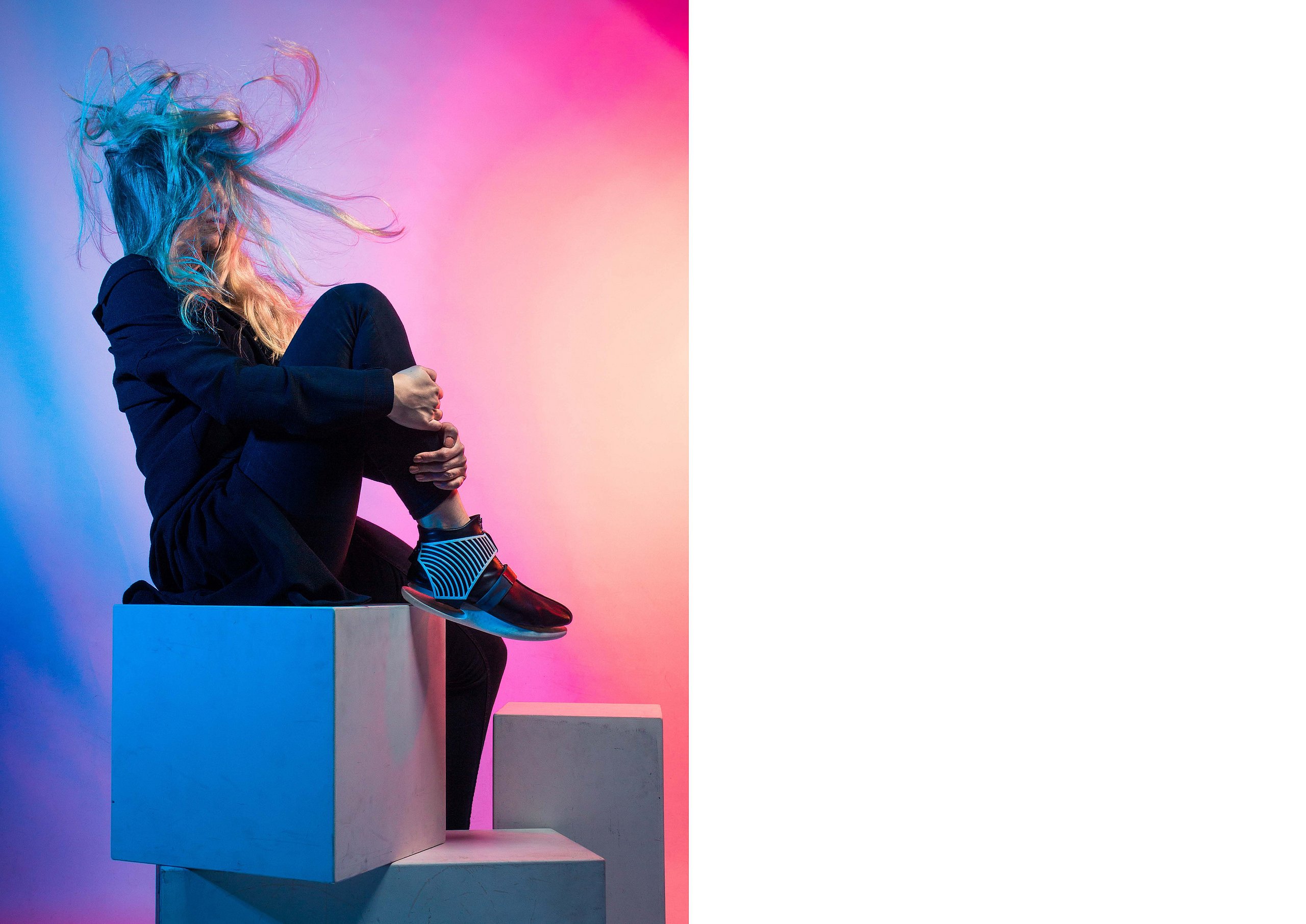 Im sechsten Semester habe ich mich mit dem Thema Genmanipulation auseinander gesetzt, weshalb es für mich nahe lag, mich mit einem Thema zu befassen, das eng mit diesen Entwicklungen zusammenwirken könnte. Behandelt wurde das Thema der künstlichen Intelligenz und das mögliche Verschmelzen von Mensch und Technologie. Bei der Genmanipulation findet ein biologisches Hacken des menschlichen Körpers statt. In Zeiten von künstlicher Intelligenz geschehen diese Optimierungen durch Technologie am oder im Körper. In Folge dessen wird deutlich, dass diese Thematik in der Gegenwart eine entscheidende Rolle spielen wird. Denn unter dem, was wir heute als „künstliche Intelligenz“ verstehen, wird in naher Zukunft kein Weg vorbeiführen. Mit dem Thema Künstliche Intelligenz wird noch immer aufgrund diverser Science-Fiction Filme oftmals Negatives verbunden. Alle reden über Künstliche Intelligenz, aber kaum jemand hat eine klare Vorstellung davon, um was es geht. Es ist Zeit, einen neuen Blick auf KI zu werfen. Auf die Gründe für übertriebene Erwartungen und Ängste, aber auch auf das Verhältnis von künstlicher und menschlicher Intelligenz. Denn kombiniert sind die beiden Intelligenzen erfolgreicher und leistungsfähiger als für sich allein. Die Zukunft gehört der Allianz von Mensch und Maschine. Deshalb ist wichtig zu verstehen, wie sich KI in den menschlichen Organismus integrieren lässt und welche Optimierungspotenziale daraus resultieren. In diesem Feld entstehen auch die Anknüpfpunkte meiner praktischen Arbeit. Die in drei Produktgruppen aufgeteilte Kollektion „Cyberdyne AIC – the last invention“, zeigt die Evolutionsstufen vom Menschen, über ein Mischwesen, den sogenannten Cyborg, bis hin zur Maschine, in Form einer sechsteiligen Sneaker Kollektion.