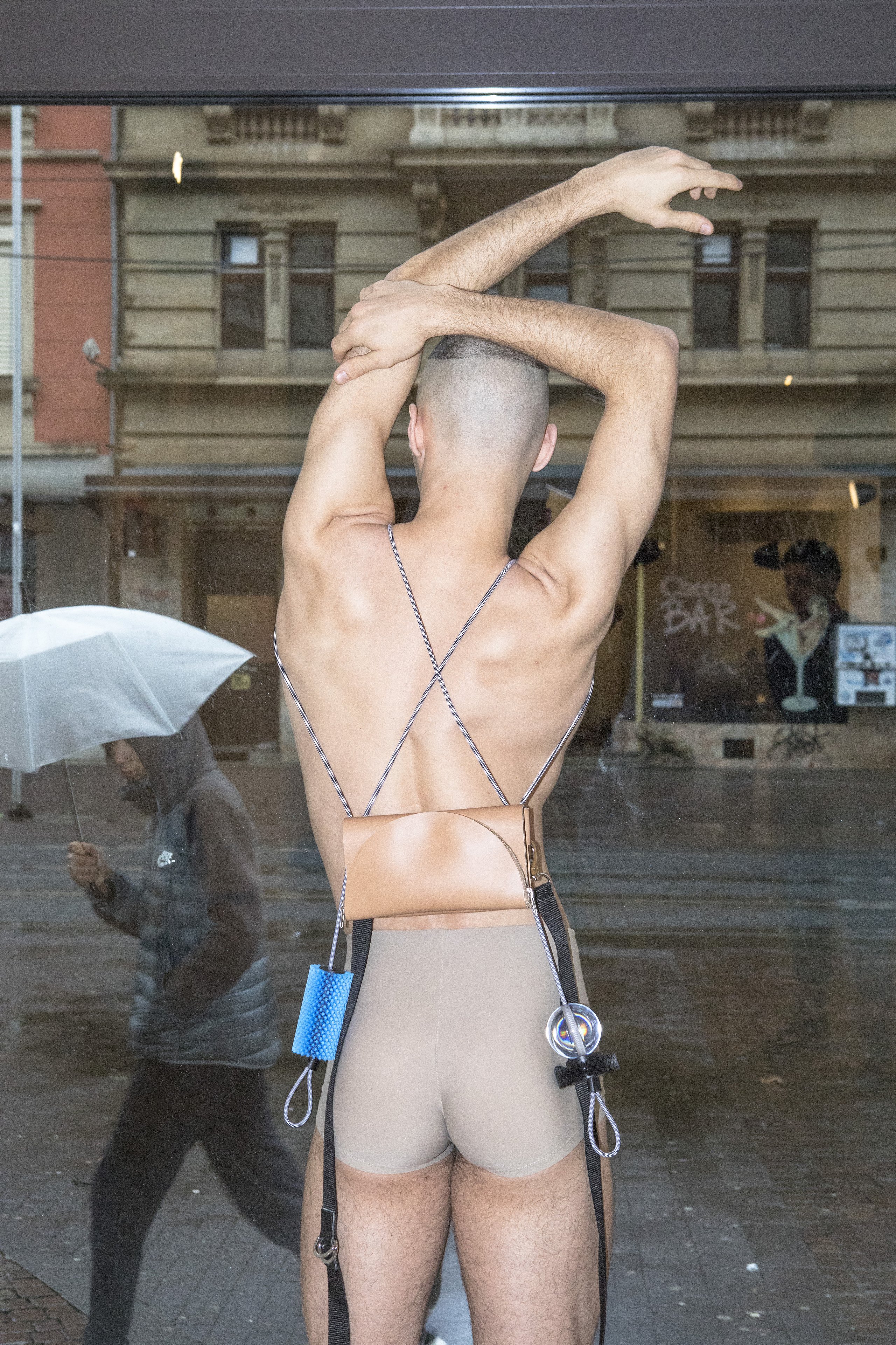 The body moves and dances every day as we put on and interact with our accessories. The way we put on shoes, lift bags, and swing them around the body are part of daily routines and unconscious processes.