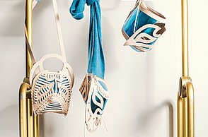 „Das maskierte Wunder“ oder „La Maravilla Enmascarada“ – so der spanische Titel – steht bei der Taschenkollektion von Nadine Eismann Pate. Die Modelle sind eine Reminiszenz an das mexikanische Wrestling „Lucha Libre“. Einem traditionellen Kampfsport, der seine Blütezeit von 1930 bis in die 70er Jahre erlebte. Ihm begegnete die 28-Jährige während eines Auslandsaufenthalts in Mexiko. „Die Bilder aus diesem Sport lassen mich nicht mehr los“, erklärte Nadine Eismann. Die Kämpfer trugen kunstvolle Masken, die sie – wie der berühmte El Santo – niemals ablegten. Die Masken stilisierten die Sportler zu Heiligenfiguren. Die Studentin nahm diese Maskenform in Flechtwerken in ihren handgearbeiteten Taschen auf.