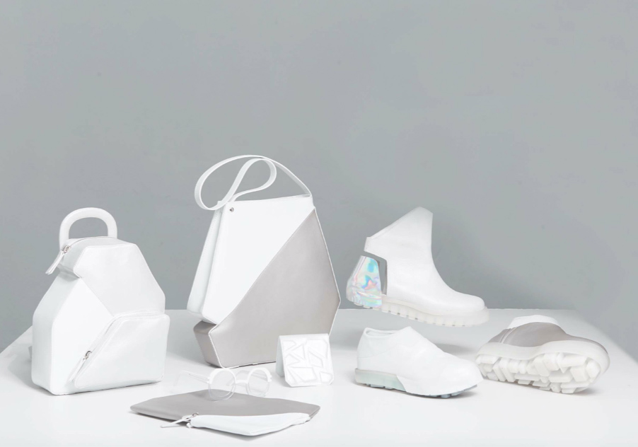 Diese vier Begrifflichkeiten werden in der Kollektion zu Produktgruppen von jeweils einem Paar Schuhe, einer Tasche, Tücher und einer Homebase, die als Ort dient an dem die Taschen und teilweise auch die Schuhe platziert werden können. Es entstehen für jeden Begriff Farbkarten, Flächenbearbeitungen und Formsprachen, die dennoch einen gemeinsamen Ursprung haben oder ineinander übergehen.