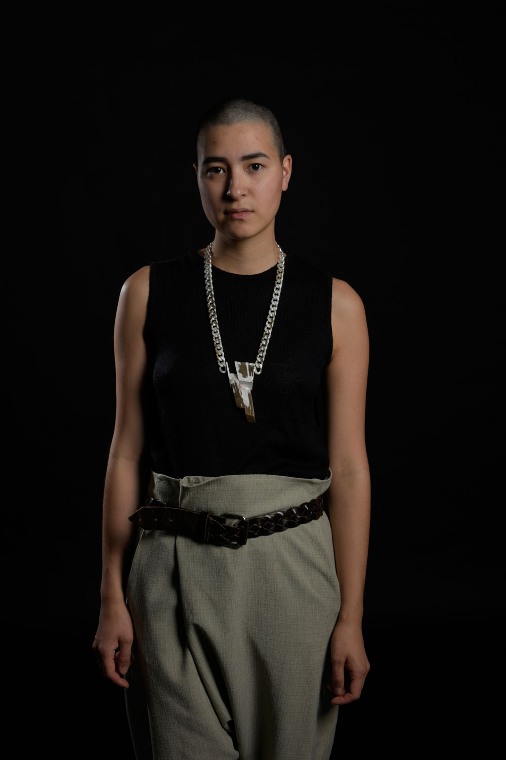 Ich habe mich in meiner Arbeit mit Diversität beschäftigt und versucht verschiedene Bestandteile zu einem Ganzen zusammen zu fügen. Alle meine Ketten bestehen aus sich unterscheidenden, massiven Messing und Silber Stücken. Durch das Zusammenfügen der Teile entsteht ein Ganzes. Die Gleichheit wird durch das endgültige versilbern aller Teile noch unterstrichen. Es ist jedoch nur auf der Oberfläche, im Kern ist der unterschiedliche Kontrast von Messing und Silber mit den einzigartigen Arbeitsspuren an jedem Einzelteil.