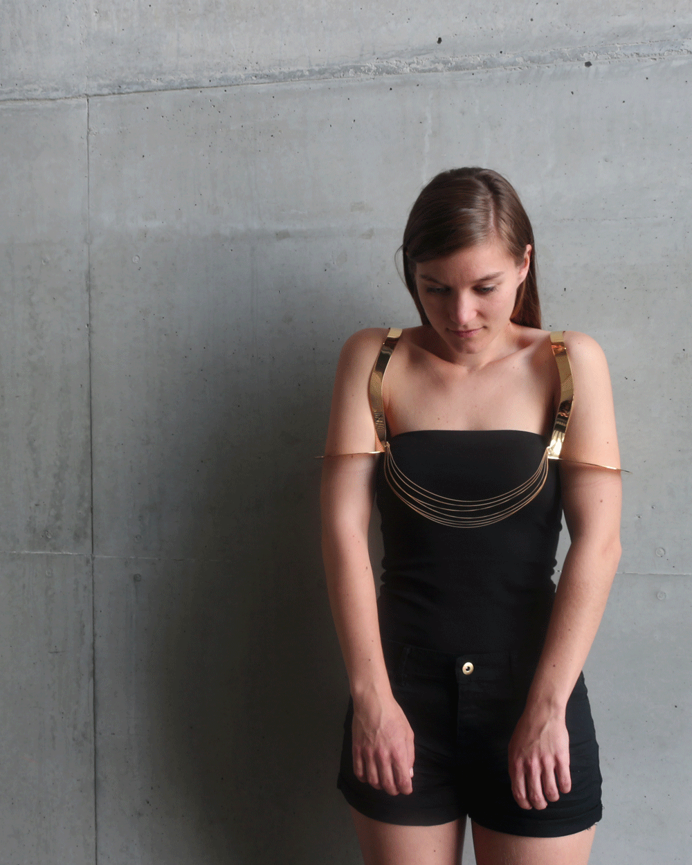 Für ihre Bachelorthesis setzte sich Regina Winker intensiv mit der animierenden Wirkung von Emotionen auf den menschlichen Körper auseinander. Durch den direkten Einfluss der Körperhaltung auf die Empfindungen des Menschen ergab sich so die Möglichkeit eine neue Art von Schmuck zu entwickeln. Dieser ermöglicht es dem Träger des Schmucks sowohl die physische, als auch die psychische Veränderung die durch das Tragen stattfindet, emotional erlebbar zu machen. Auf diese Weiße wurden die Emotionen Freude, Angst und Wut, welche uns zu einem couragierten Handeln animieren, in Schmuckstücke transportiert, die unsere Körperhaltung und –sprache beeinflussen. Für den Träger wird dies zu einer lustvollen Entscheidung für ein erfahrbar machen von Emotionen.