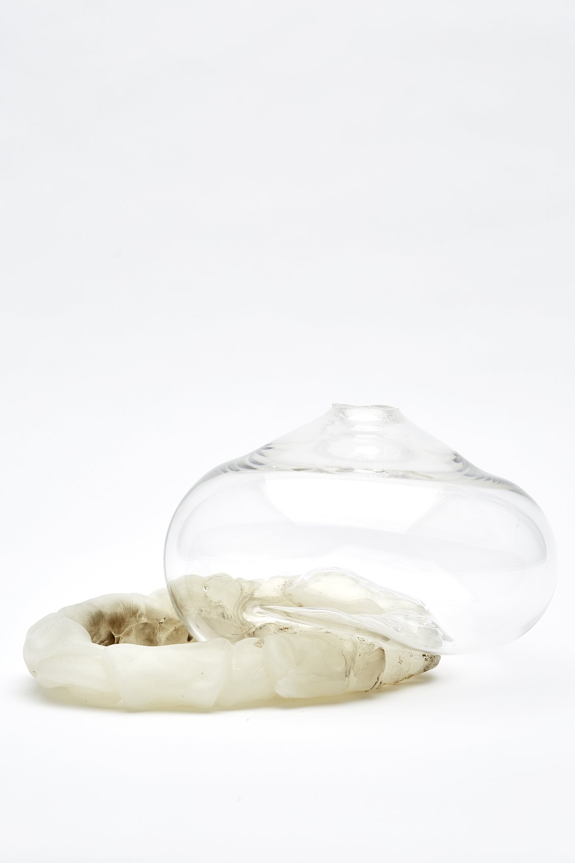 Glas und Kunststoff - zwei menschengemachte, synthetische Stoffe, die sich ähnlicher und fremder nicht sein können. Sowohl die Erforschung von Grenzen im Material als auch ihre Vereinigung bewegen Franziska Vogts’ Design Recherche in die Materialwissenschaft.