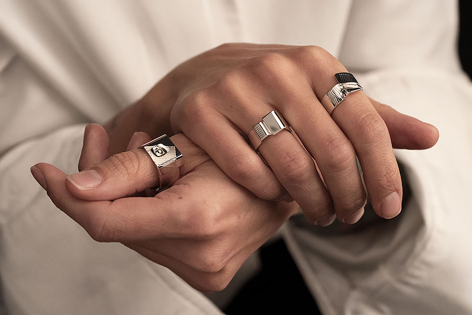 Mit dieser Haltung ist eine Kollektion aus Armreifen, Ringen, Mehrfingerringen und ear cuffs entstanden.