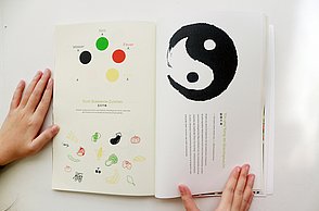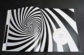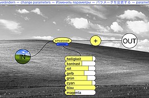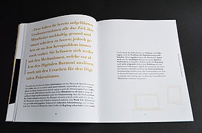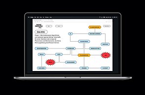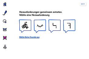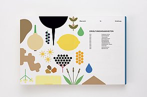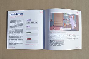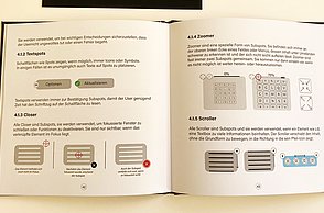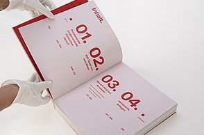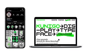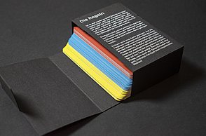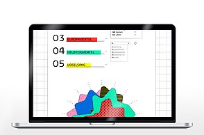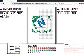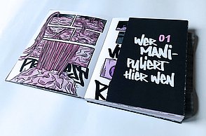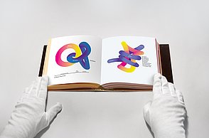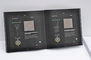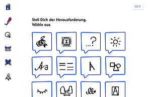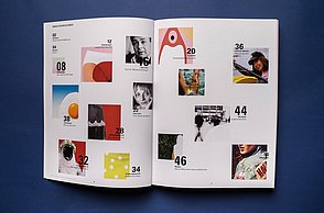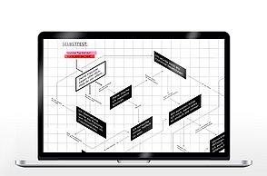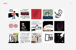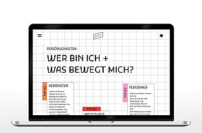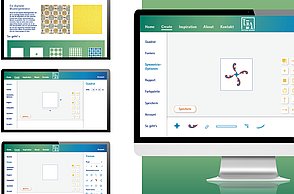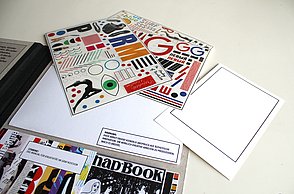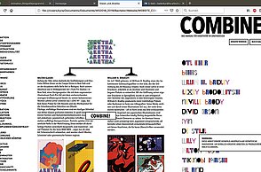 Um noch mehr Möglichkeiten der Kombination selbst auszuprobieren und um weitere Designprinzipien kennen zu lernen, beinhaltet das Printprodukt einen Verweis auf die Website. Diese bietet ein Archiv aus grafischen Möglichkeiten, welche in Form einer Menüleiste angeordnet sind und ausgewählt werden können. Über eine zweite Menüleiste können Grafikdesigner einander gegenüber gestellt werden. Hier können die einzelnen Elemente in einer Art Minigrafikprogramm miteinander kombiniert werden.