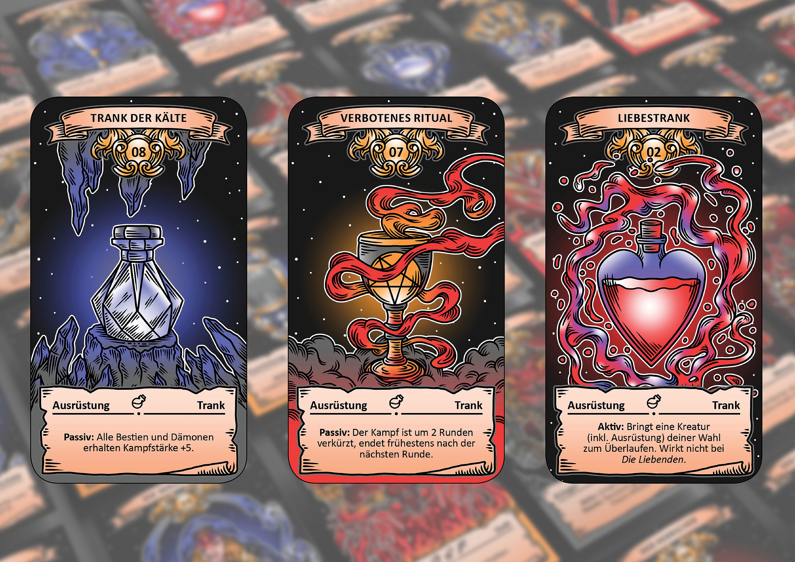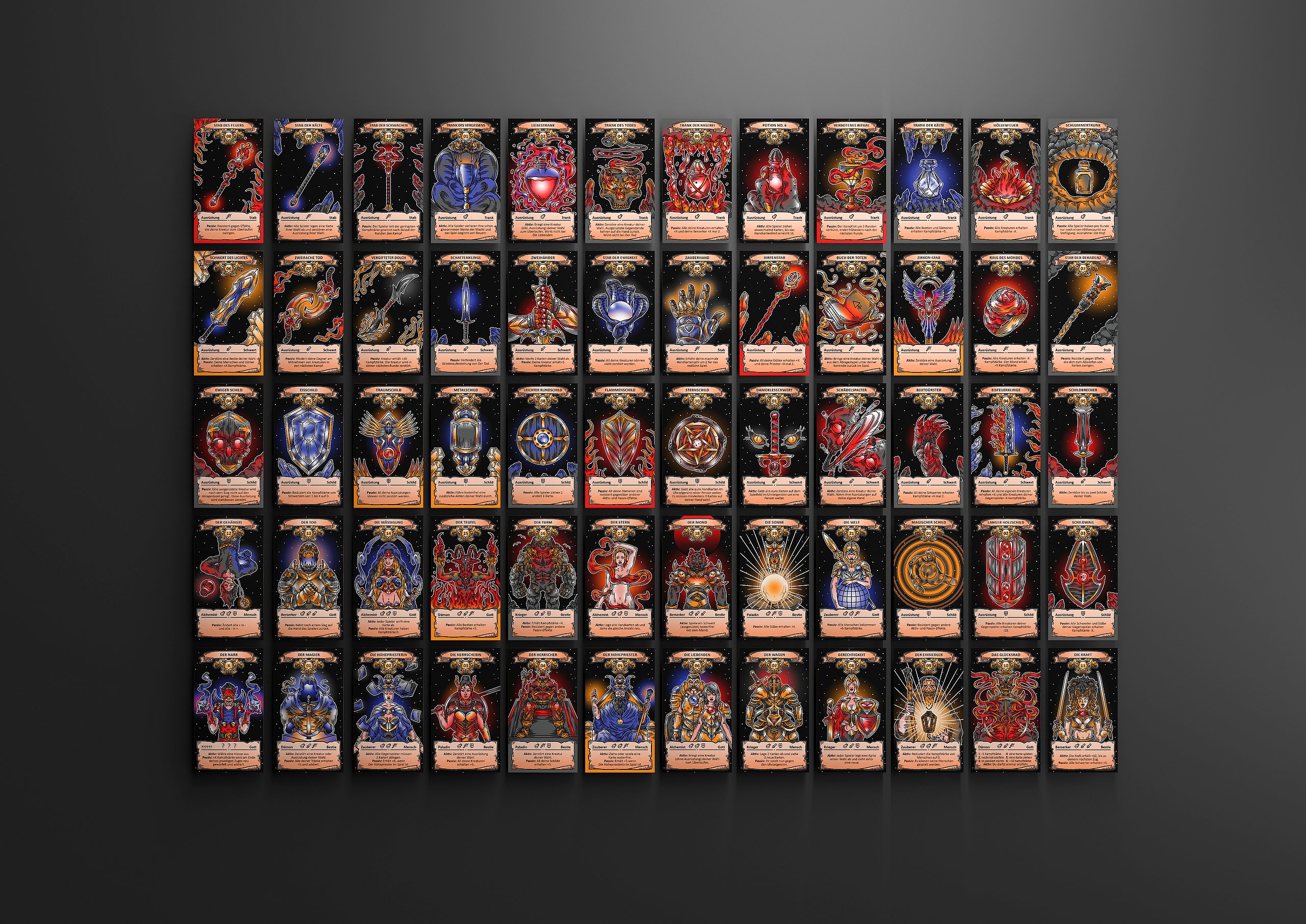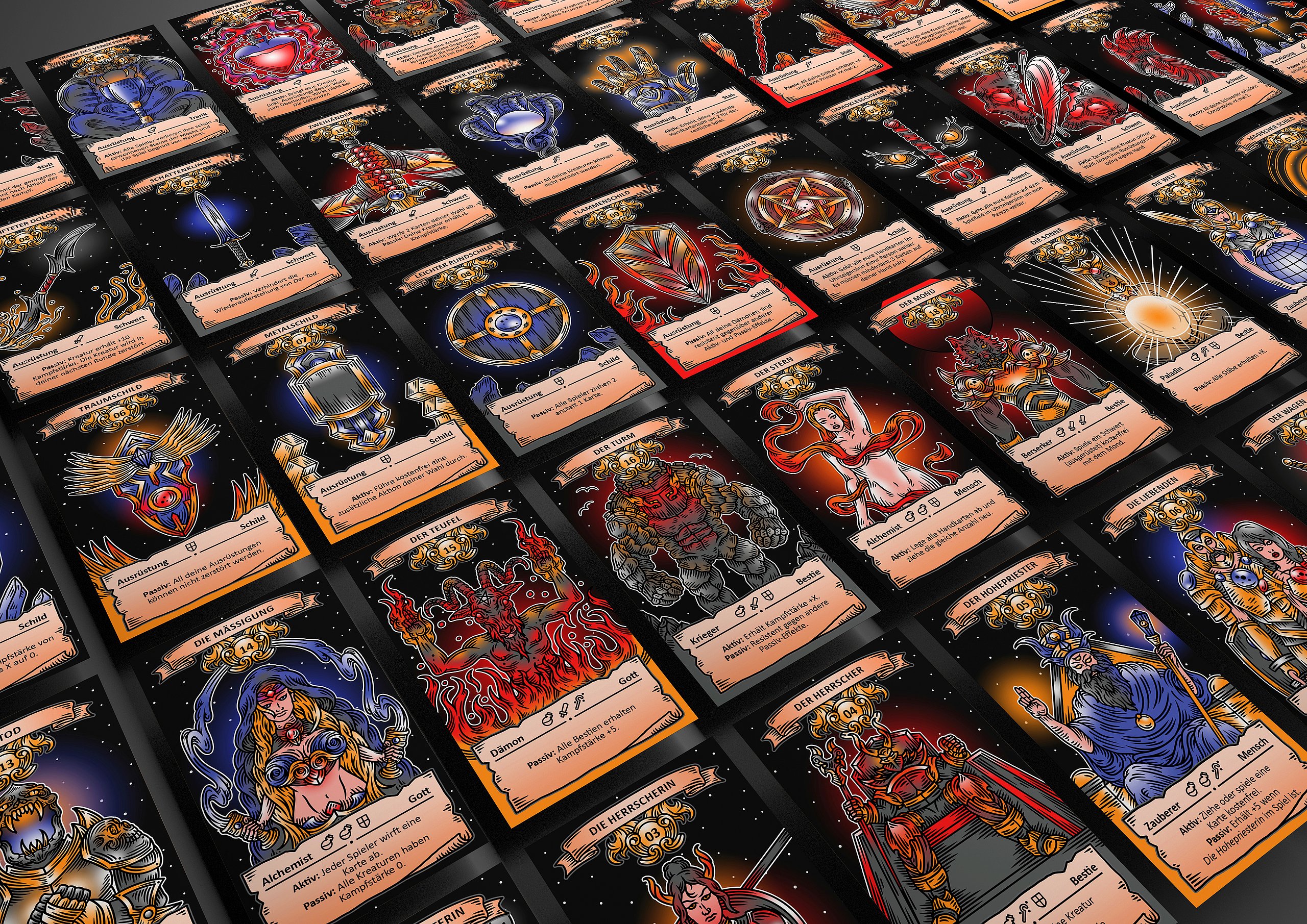 Im Zuge der Thesis „Das Spiel der Herrscher - Ein Trading Card Game“ ist ein strategisches Trading Card Game namens „Königshand“ entstanden. Es spielt in einem selbst erfundenen Mittelalter-Fantasy-Setting. Als Endprodukt kam eine Starter-Box mit zwei spielbaren Decks, Regelwerk, Spielfeldunterlagen und Schadensmarken heraus. Trading Card Games sind Kartenspiele, deren verschiedenen Karten die zugrunde liegenden Regeln auf unterschiedliche Weisen überschreiben können. Zudem sind diese Karten sehr zahlreich, was dazu führt, dass sie von den Spielern gesammelt und getauscht, beziehungsweise gehandelt werden. Der zugrunde liegende Gedanke dieses Projekts war, dass Schach als Spiel der Könige nicht den Ansprüchen eines Spiels der Herrscher genügt und ein Trading Card Game die nötige Variation und Möglichkeiten bringen kann. So wurden in der Entwicklung Mechaniken und Konzepte aus Strategiespielen wie beispielsweise Age of Empires 2 mit denen eines Trading Card Games für ein spannendes, anspruchsvolles und vor allem spaßiges Spielerlebnis kombiniert.