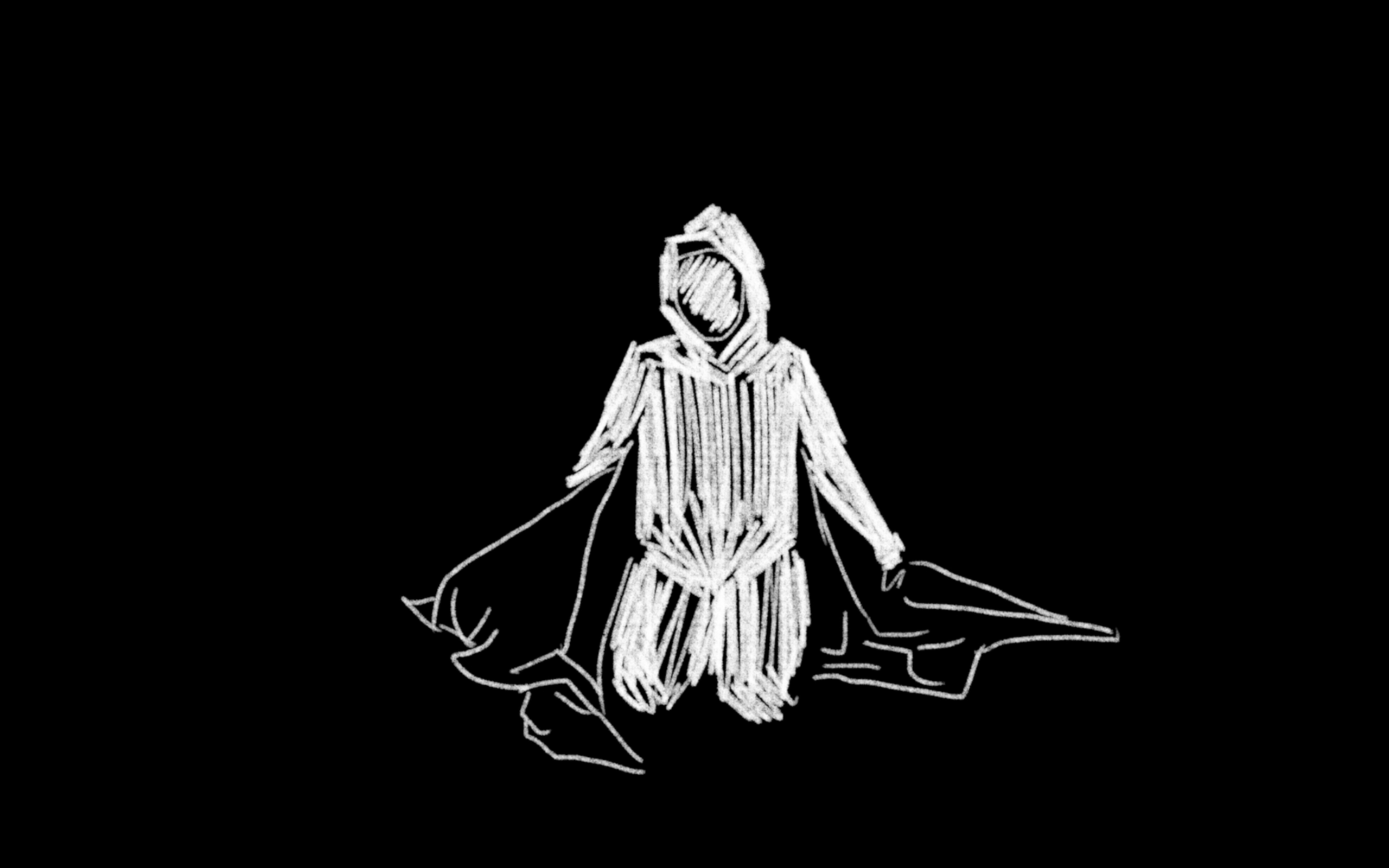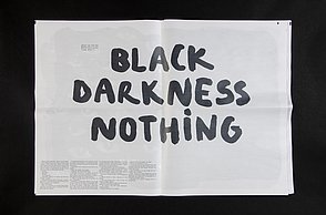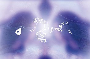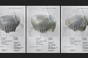 Im Programm TouchDesigner habe ich die Audioreaktion gestaltet: Die Schrift wird in Echtzeit gerendert und dabei durch einen audioanalysierten Noise-Filter verzerrt.
