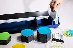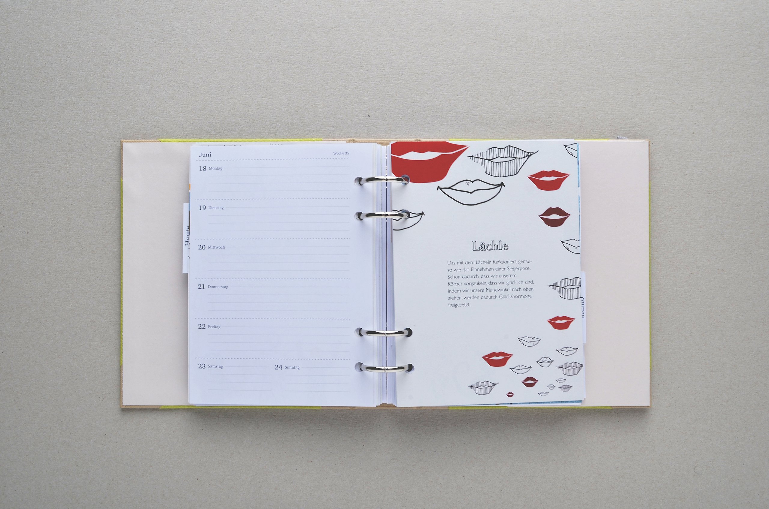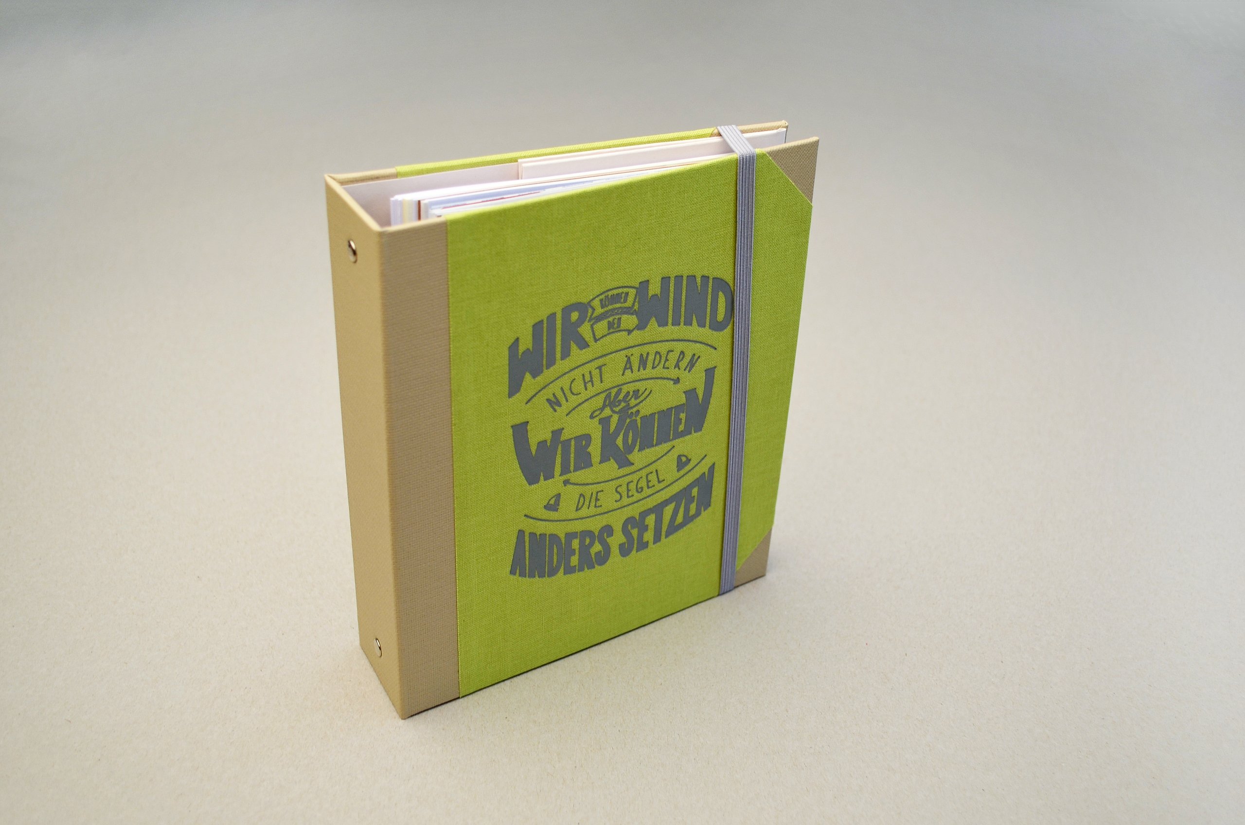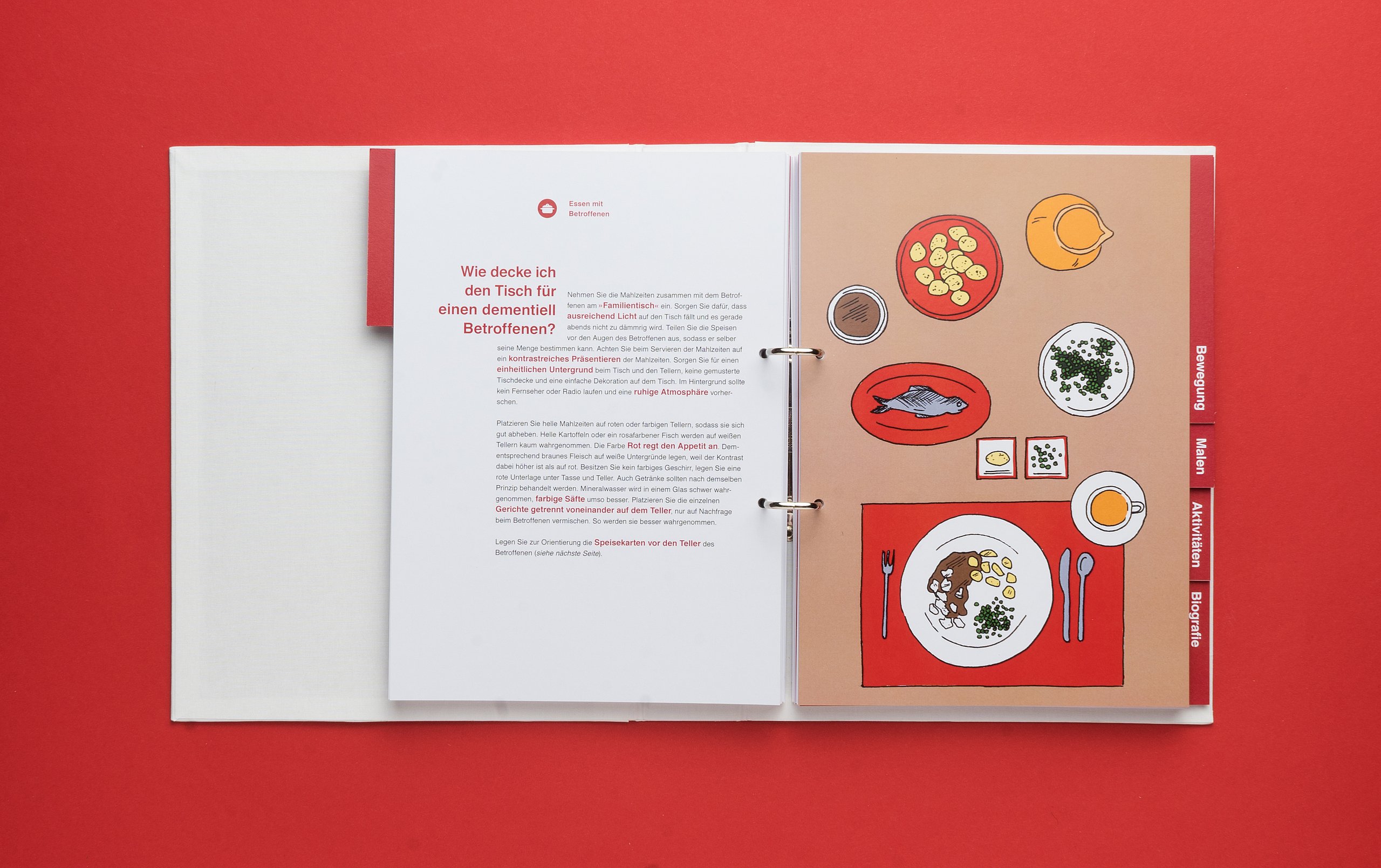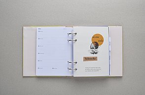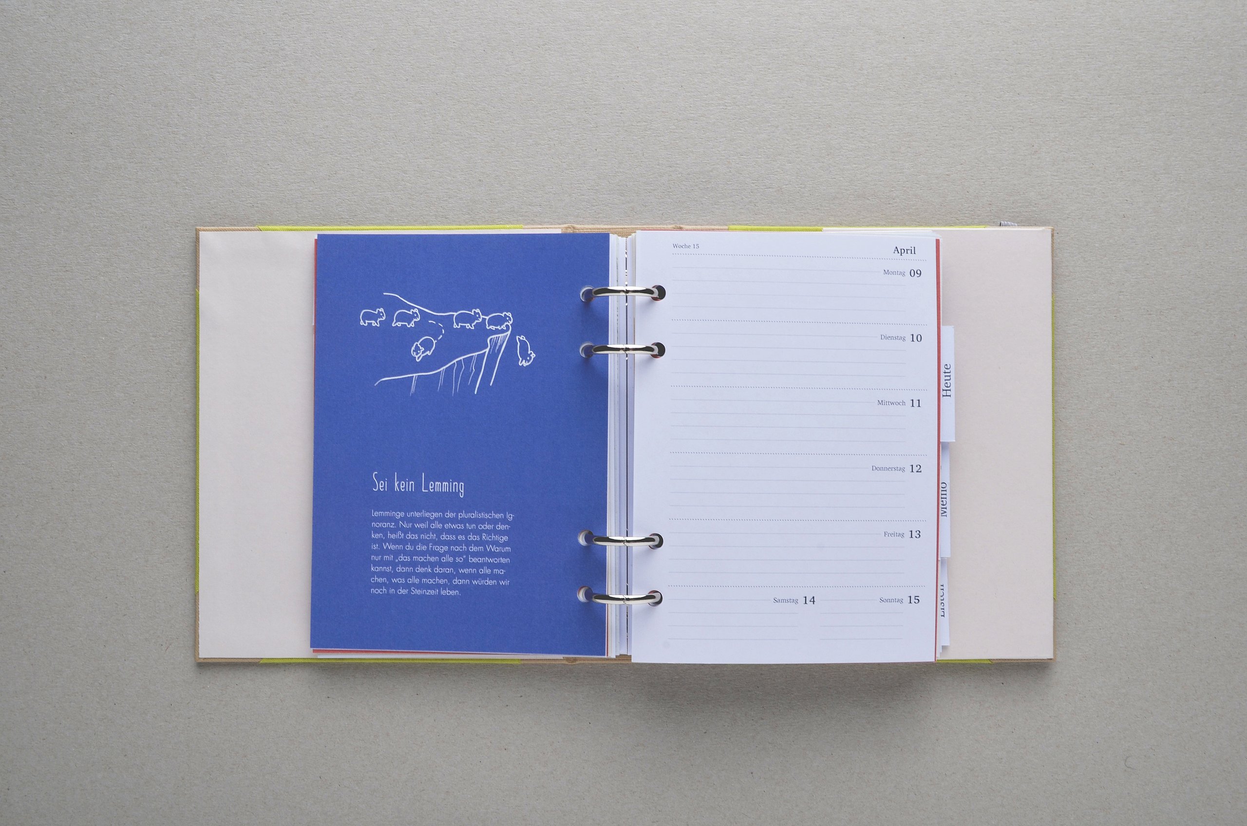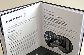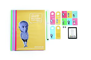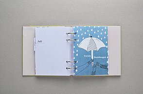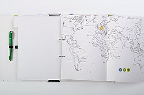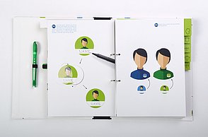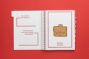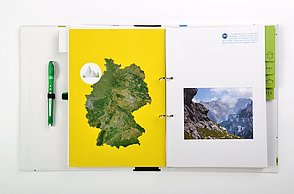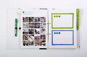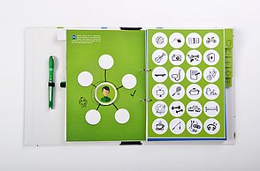Knapp 60 Millionen Menschen befinden sich aktuell auf der Flucht – viele suchen in Deutschland Zuflucht. Die großen Zahlen stellen Land, Gemeinden und Helfer vor Herausforderungen. Diese Menschen suchen nicht nur nach einem neuen Ort zum Leben, sondern Integration, Anschluss und eine Zukunft. Die traumatisierten Flüchtlinge sprechen vielfach kein Englisch oder Deutsch, zum Teil ist ihnen auch das Schreiben oder Lesen fremd. Die Designerin arbeitet mit vielen Methoden, die aus einem anderen Umfeld bekannt sind. Sie sammelte diese Lern- und Arbeitsideen, arbeitete sie detailliert für Flüchtlinge um und entwickelte so ein passgenaues System. „Die Arbeitsweise entspricht der Lebenswelt und ist speziell für Erwachsene geeignet”, charakterisiert Amelie Weinert, die für „Mein Deutschland” lange recherchierte. „Der Ordner verkörpert genau das, was Visuelle Kommunikation ausmacht: Menschen verständigen sich über visuelle Elemente und ohne lange Texte. Ich habe bestehende, bekannte Gestaltungen hinterfragt und einen neuen Weg gesucht, der es meiner Zielgruppe ermöglicht, sehr einfach zu verstehen und agieren.”