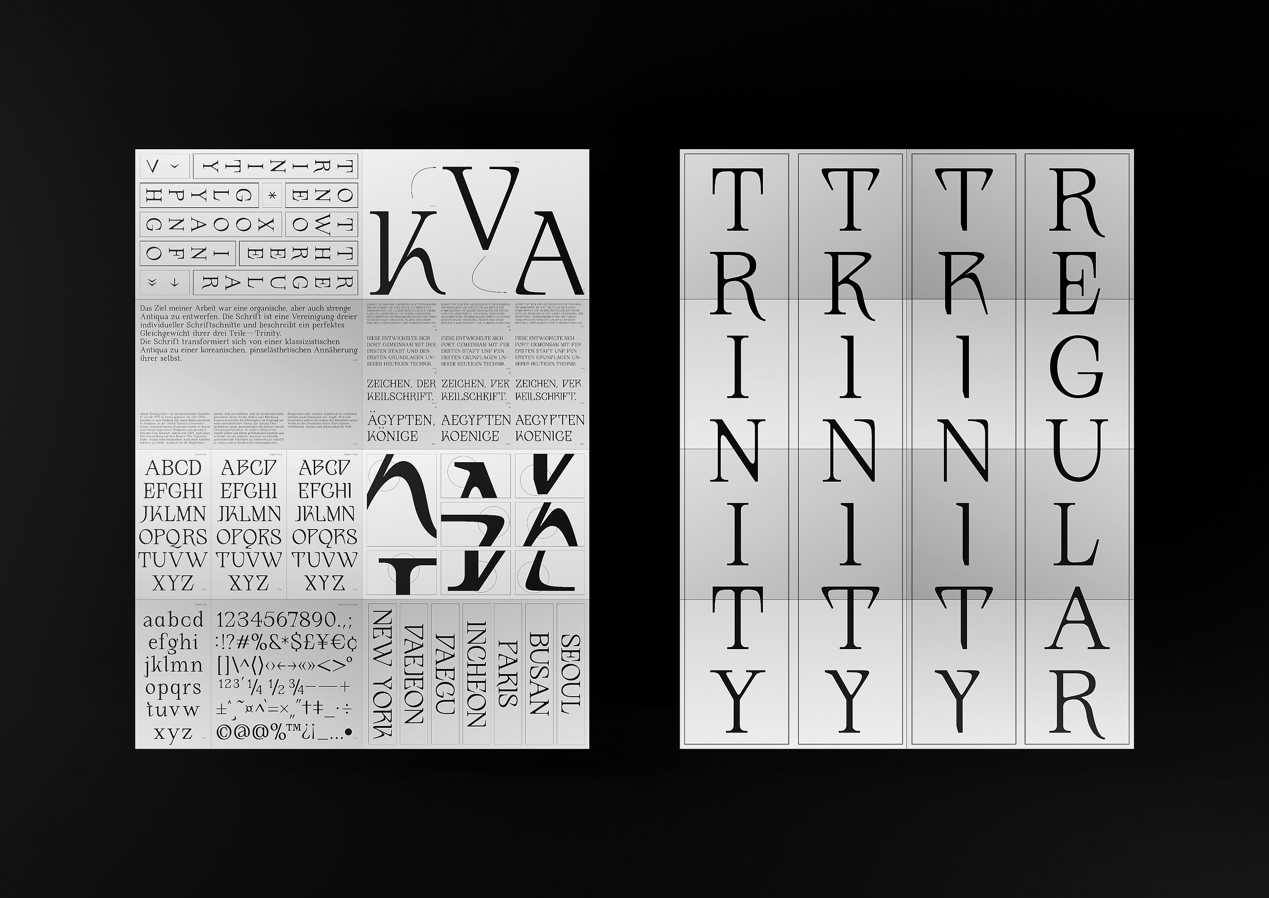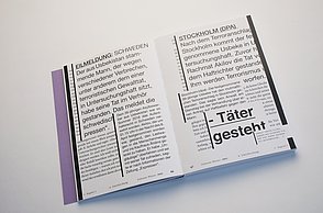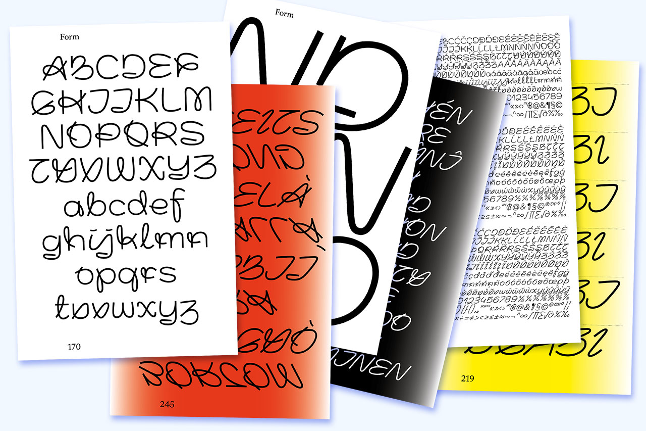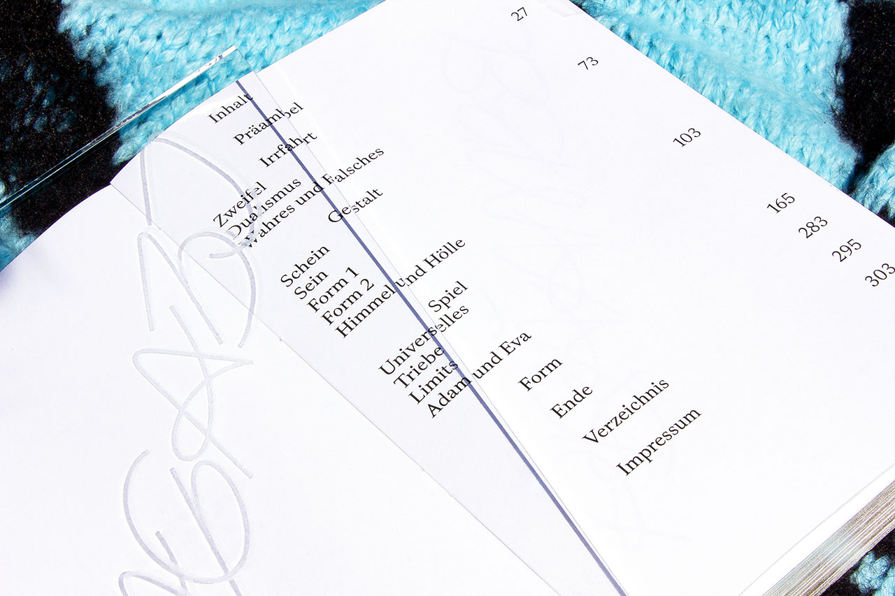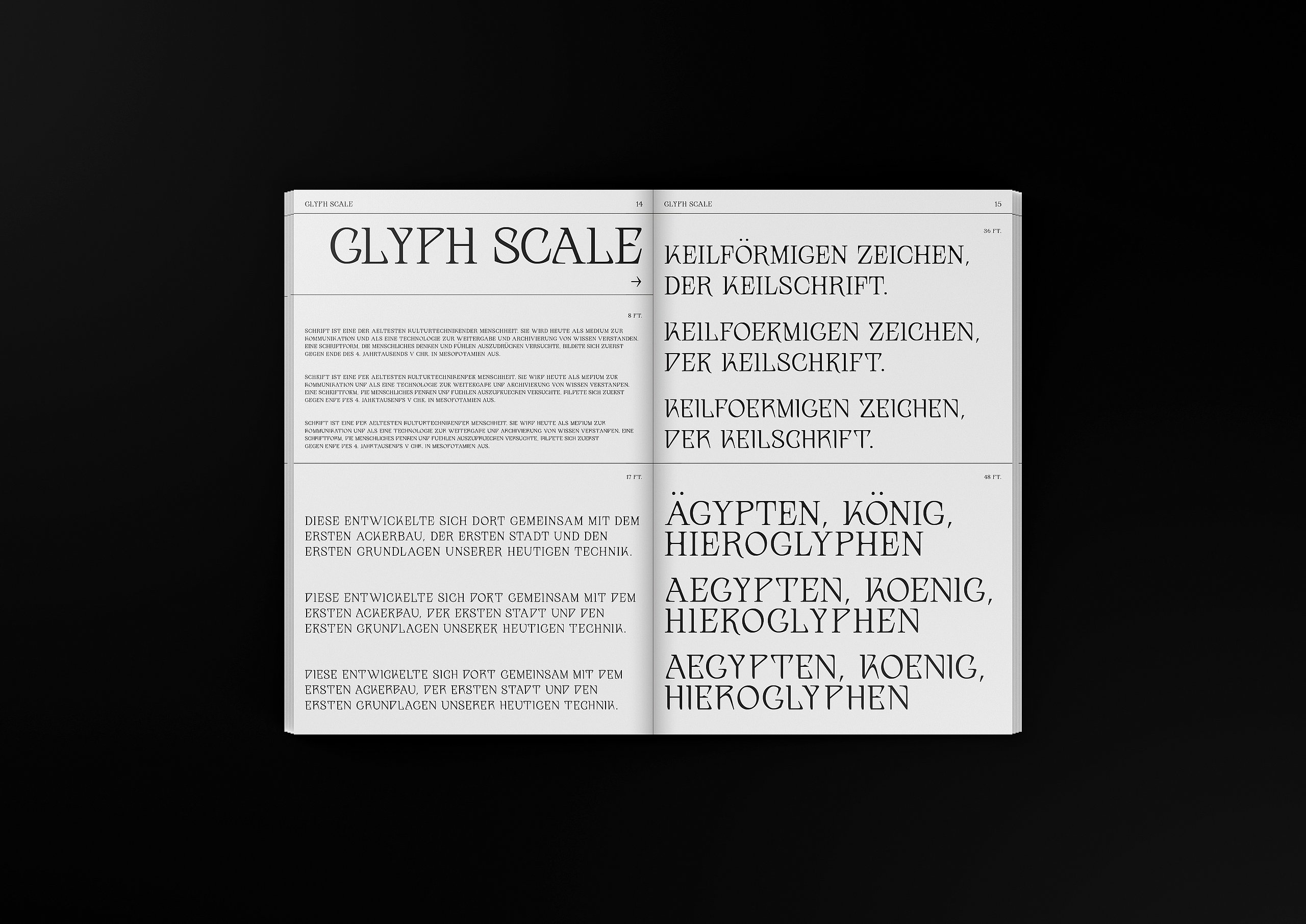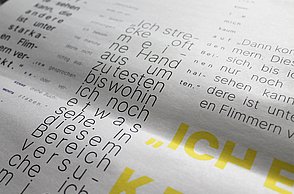 Die Grundschrift, "Transcripta Still", ist eine von mir gestaltete Grotesk-Schrift.