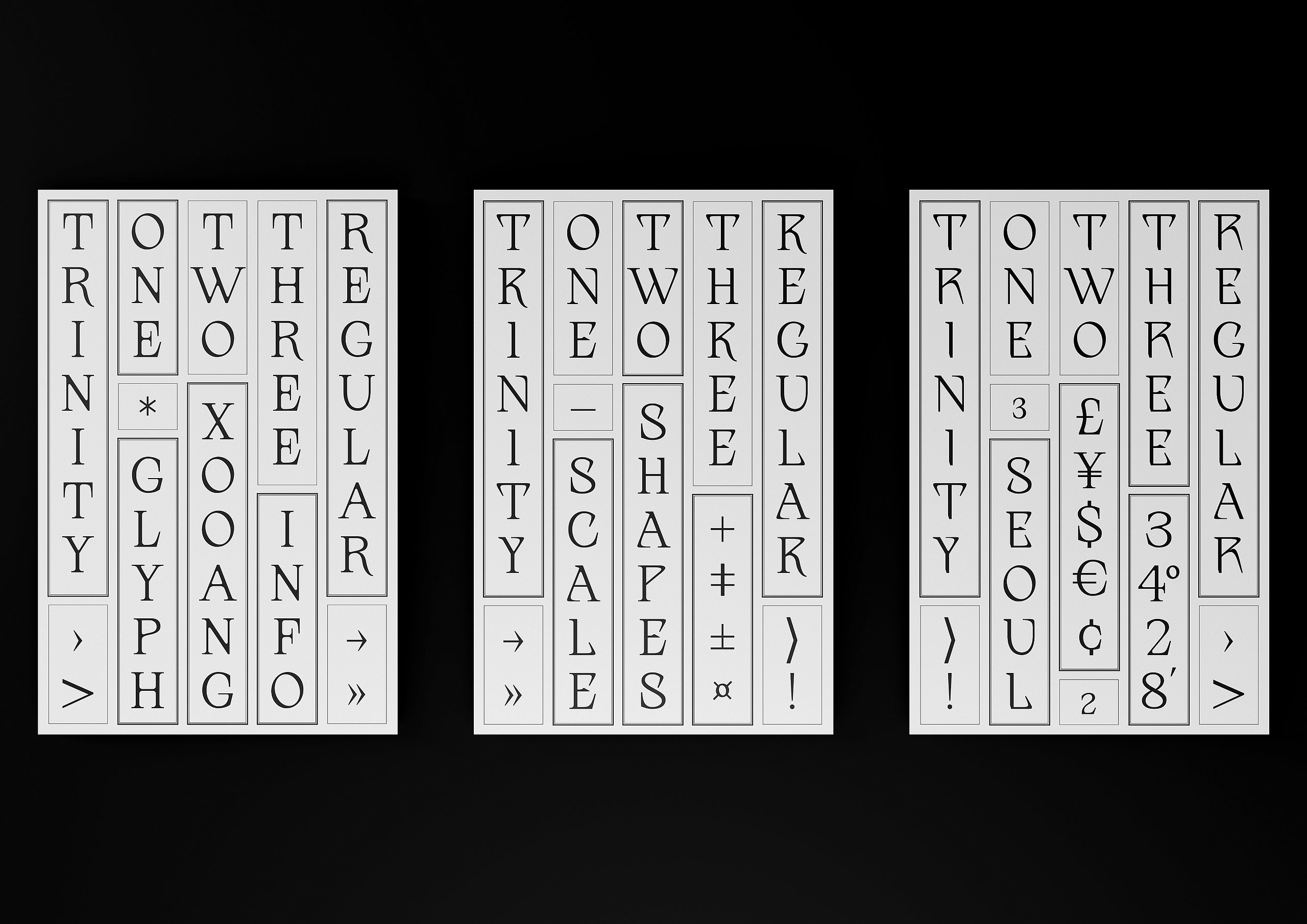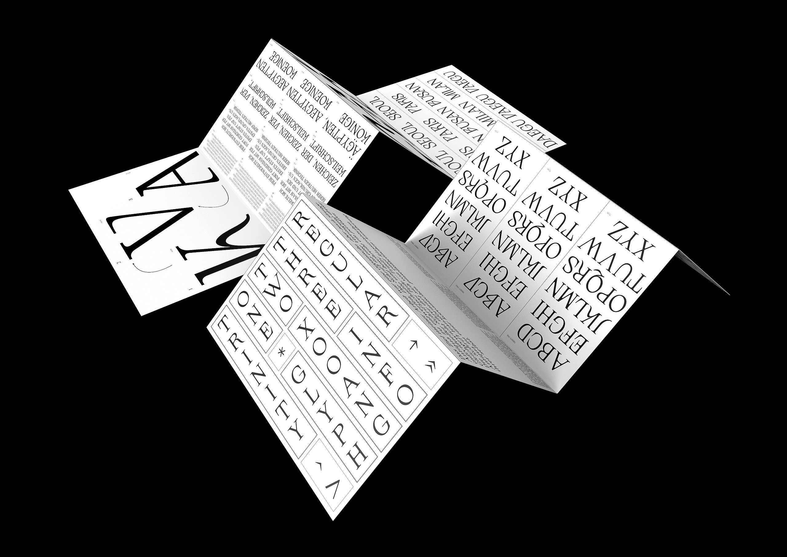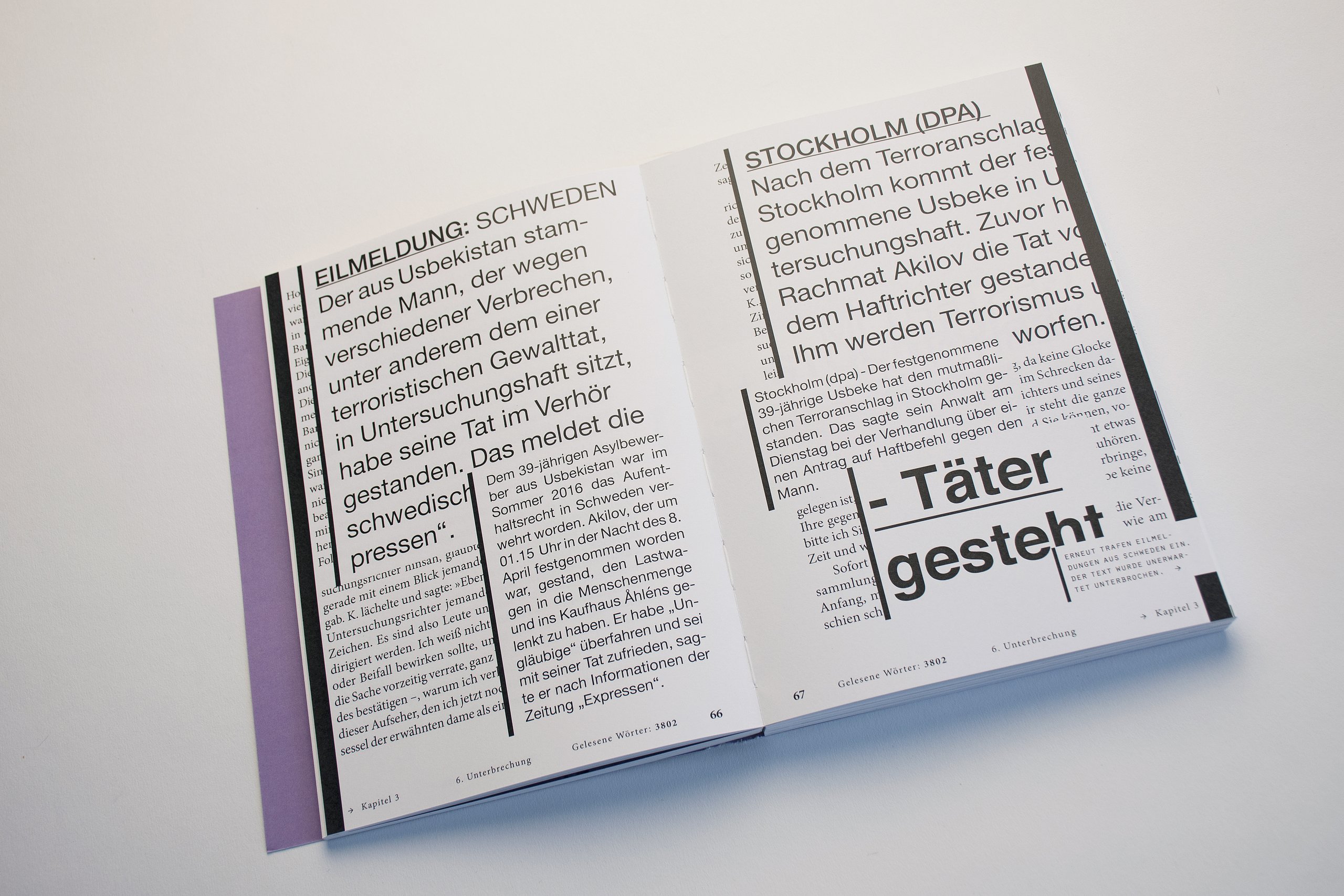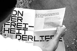Die Grundschrift, "Transcripta Still", ist eine von mir gestaltete Grotesk-Schrift.