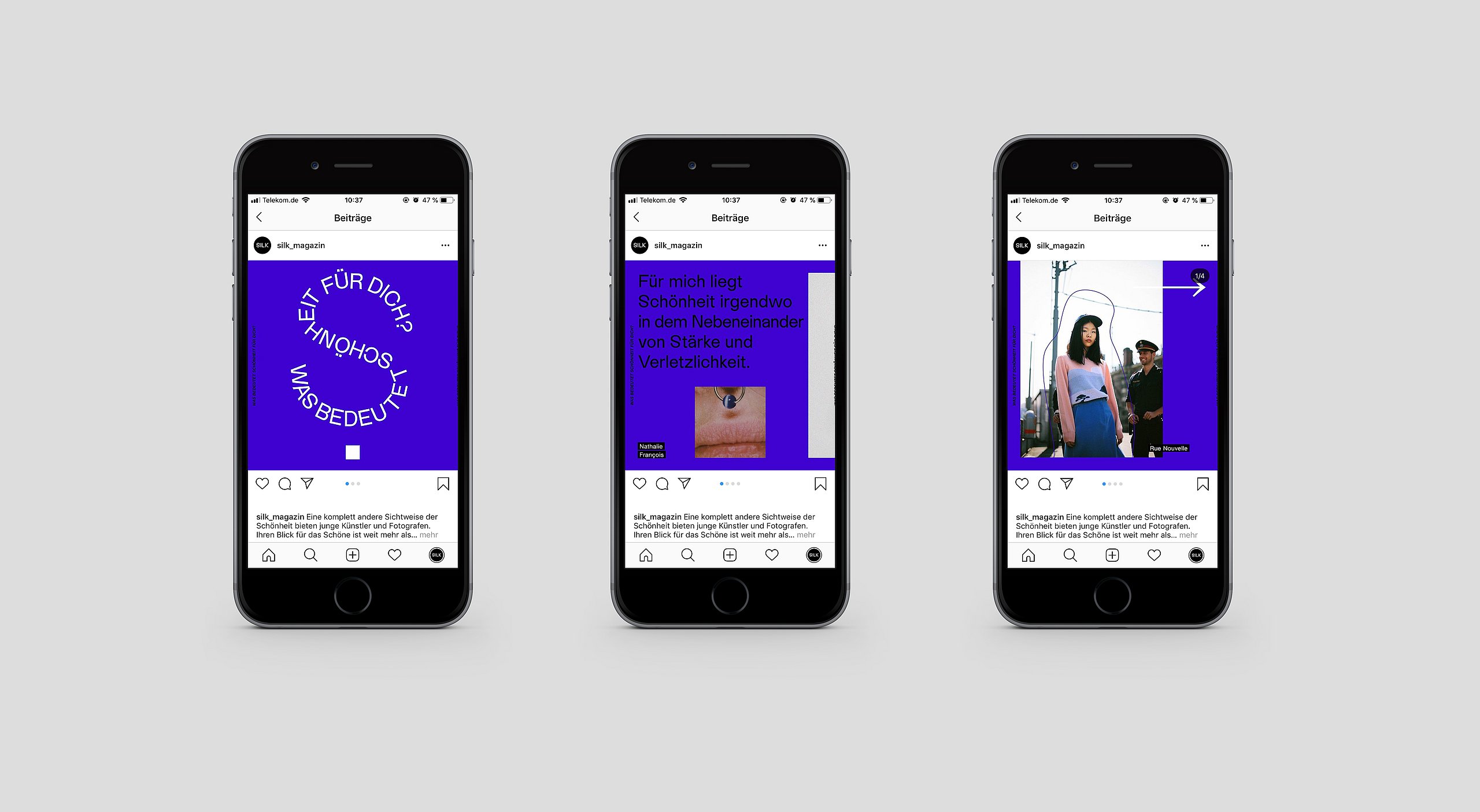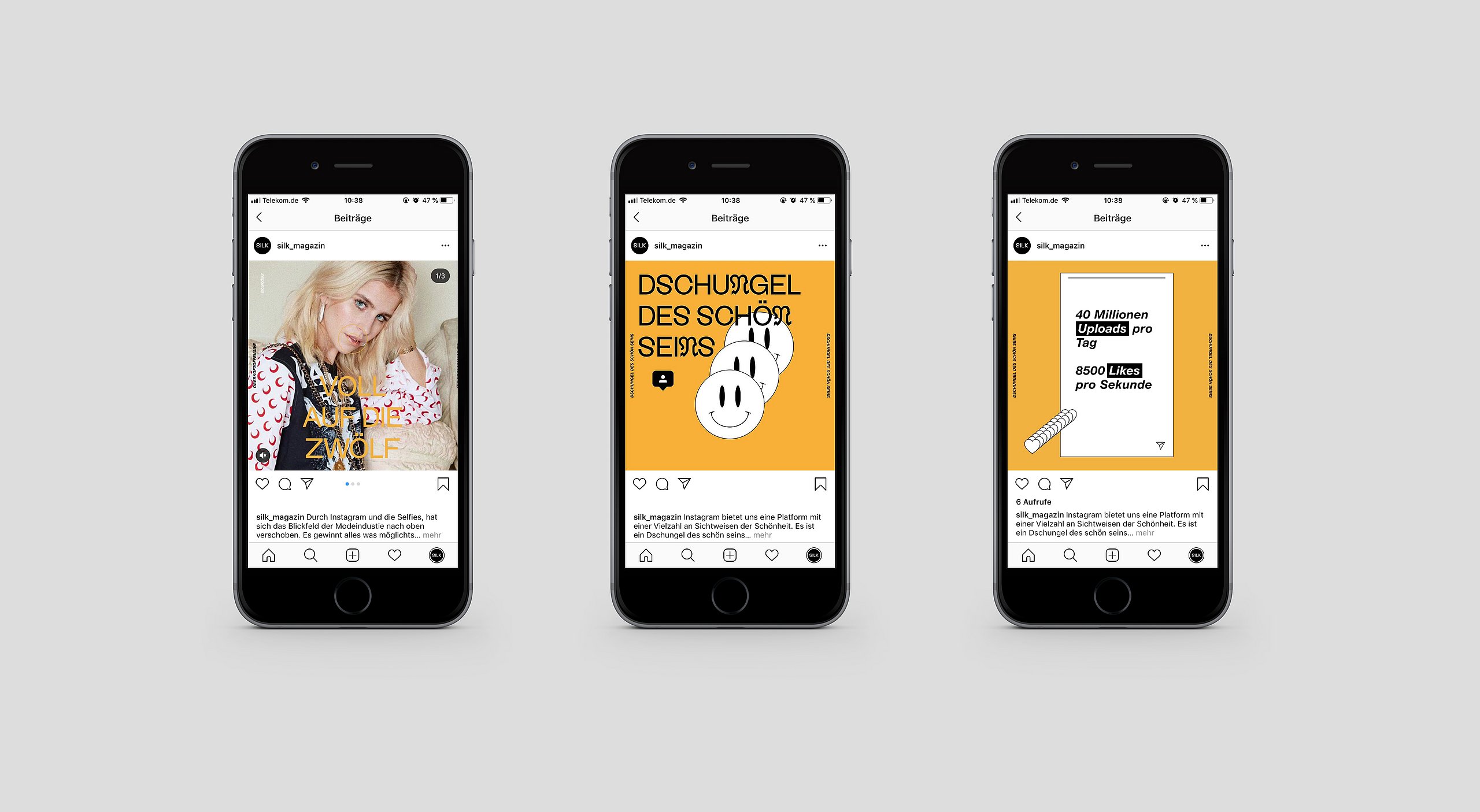 In erster Linie ist SILK auf Instagram aktiv, wo pro Woche eine Variante der Schönheit behandelt wird. Da Instagram sehr schnelllebig ist, gibt es zusätzlich ein Print-Magazin, welches über eine Webseite kostenfrei abonniert werden kann. Dort wird jedes Thema, dass auf Instagram gespielt wurde, ausführlich behandelt. Die Webseite bildet außerdem eine online Sammelstelle für alle bisher behandelten Themen.