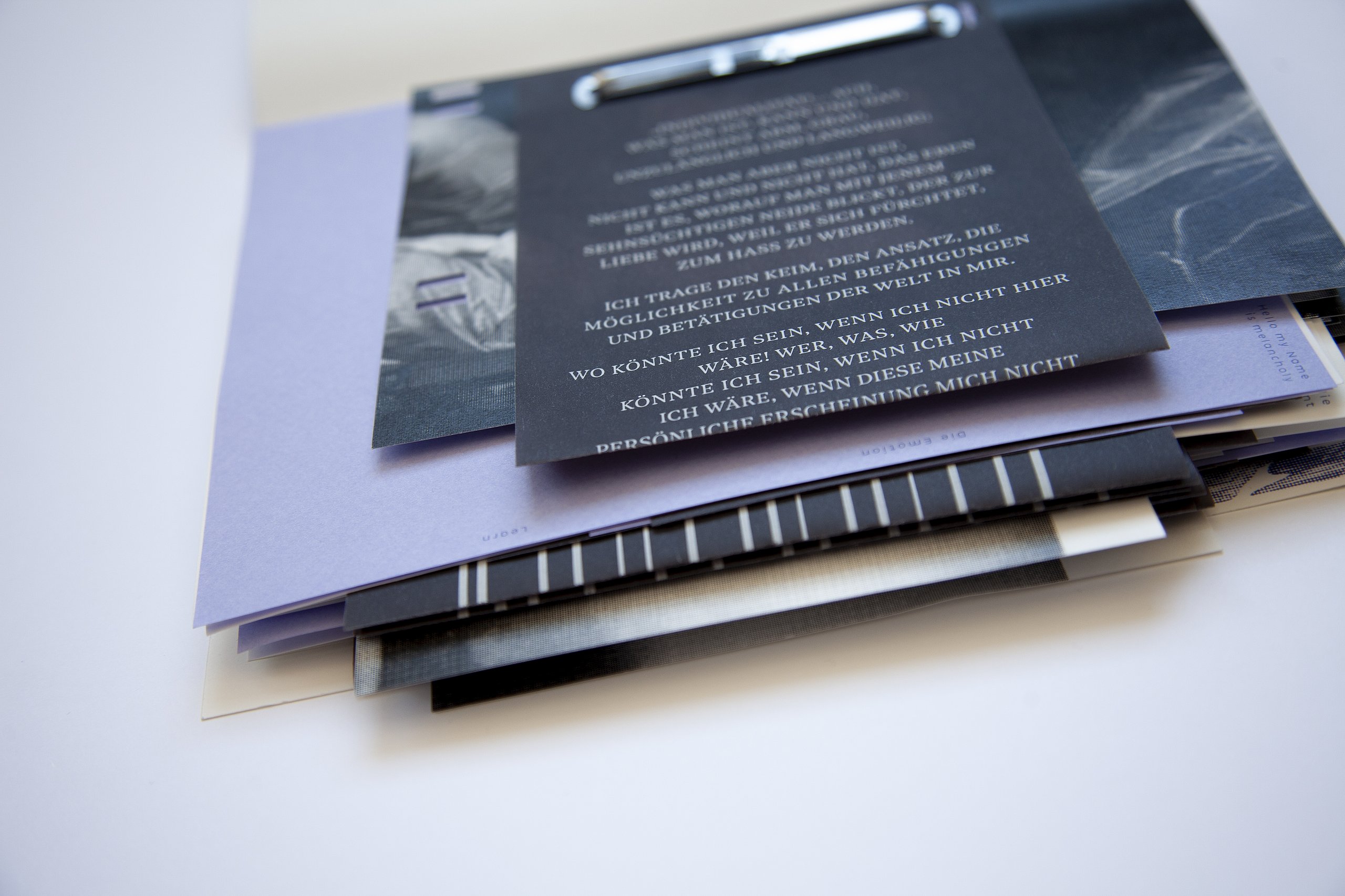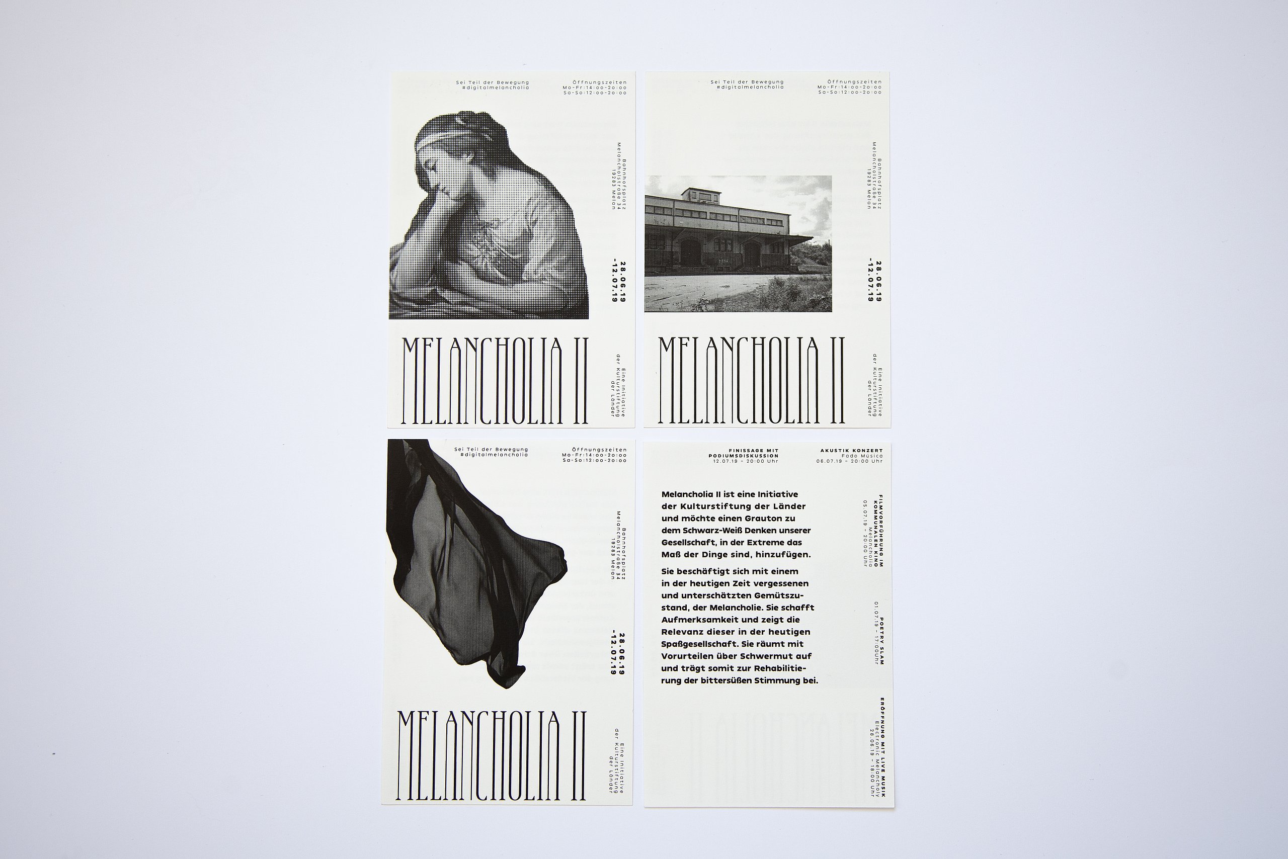 Mit meiner Bachelorarbeit über die Schönheit der Melancholie, namens Melancholia II, möchte ich einen Grauton zu diesem Schwarz-Weiß-Denken unserer Gesellschaft hinzufügen, in der scheinbar Extreme das Maß der Dinge sind. Die Arbeit kommt in Form einer Initiative, bestehend aus einer Rauminstalation, einem Social Media Auftritt und einem persönlichen Journal, welche sich mit einem in der heutigen Zeit vergessenen und unterschätzten Gemütszustand, der Melancholie, beschäftigt. Sie schafft Aufmerksamkeit und zeigt die Relevanz dieser in der heutigen Spaßgesellschaft. Sie räumt mit Vorurteilen über Schwermut auf und trägt somit zur Rehabilitierung der bittersüßen Stimmung bei, indem sie den Menschen die Möglichkeit gibt sich individuell und persönlich mit dem Thema auseinanderzusetzen.