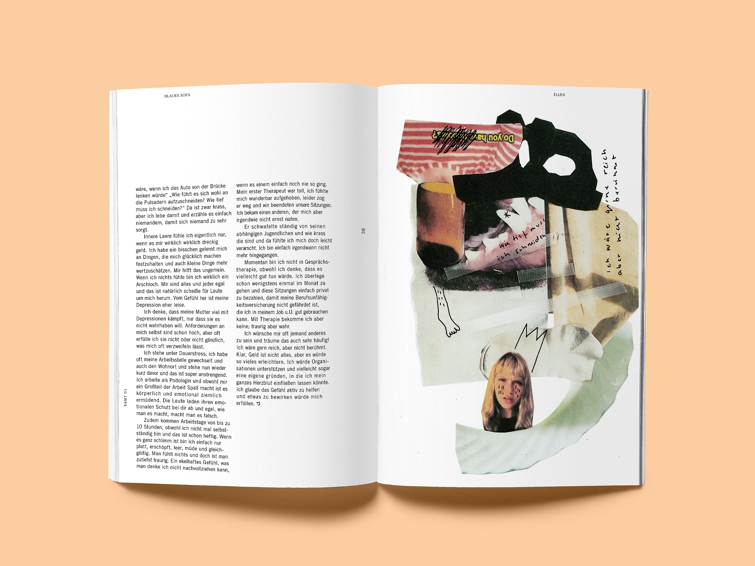 Diese Bachelorthesis verfolgt das Ziel, Selbstverletzung aus dem Schatten der Gesellschaft zu holen. Hauptmedium des Projektes ist ein Film, der sich an Nicht-Betroffene richtet und einen tiefen Einblick in die emotionale Ebene der Thematik gewährt, indem er die Gefühle und Gedanken betroffener Menschen sichtbar macht. Das Printmedium besteht aus vier Leporellos und einer zugehörigen Aufbewahrungsbox und richtet sich direkt an Betroffene. Für sie wird ein Schutzraum geschaffen, in dem sie lernen können, ihr Handeln zu akzeptieren und aus einer schambefreiten Perspektive zu betrachten.