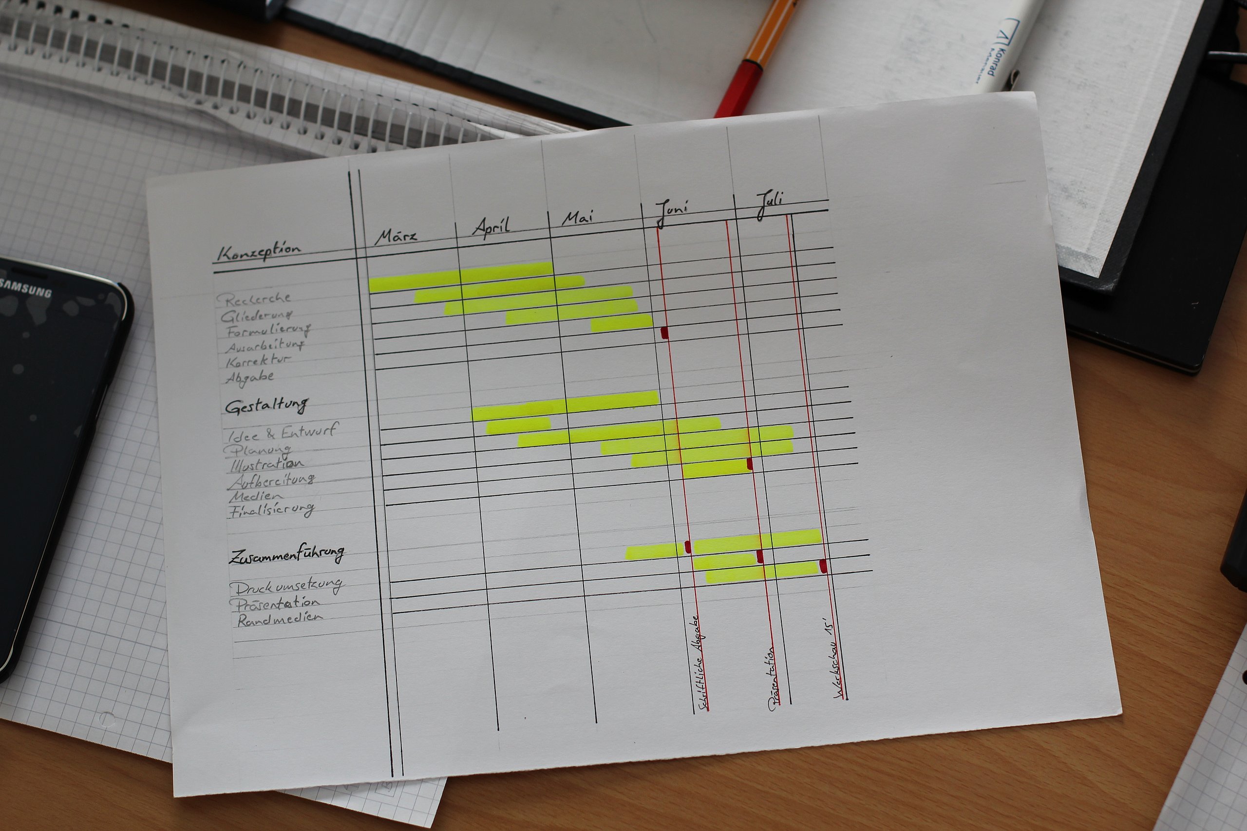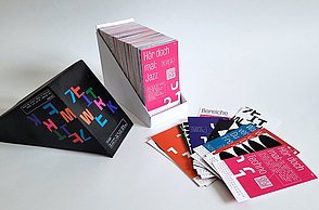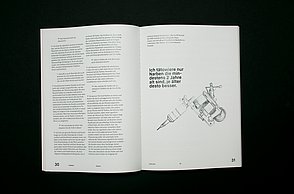 Meine Bachelorarbeit ist in zwei parallel existierende, sich inhaltlich ergänzende Medienkanäle aufgeteilt: Zum Einen in ein Printprodukt und zum Anderen in eine Website. Das Printprodukt umfasst in sich mehrere Teile: In einer Art Mappe aus Karton befinden sich ein Heft, ein Plakat und Stickerbögen, sowie Postkarten in einem Umschlag. Das Heft zeigt ausgewählte, bedeutende Grafikdesigner in zeitlicher Abfolge und eine Auswahl ihrer Arbeiten. Ihre Designphilosophie wird hier beschrieben und ihre Mittel, Werkzeuge und Techniken werden aufgezählt.