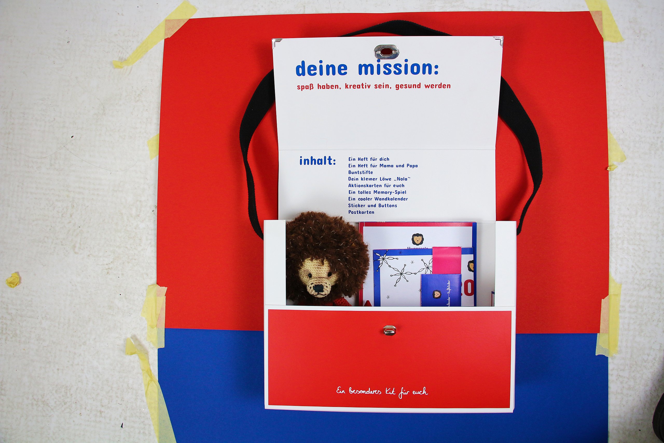 Aus diesen Rahmen-Kriterien entstand die Idee zu einem Legasthenie-Kit, das mithilfe verschiedener Bestandteile auf unterschiedliche Parameter der Aufklärung eingeht. Diese sind neben der Aufklärung: Empathie, Selbstreflexion, Gemeinschaft und Hilfestellungen. Das Legasthenie-Kit ermöglicht so eine umfassende Auseinandersetzung mit der Thematik Legasthenie. Das Kit kommt in einer 31cm x 22,5cm x 16 cm hohen Box, die Sach- und Rätselhefte für 30 Kinder enthält, einer illustrierten Kindergeschichte über die Legasthenie-Ziege mit integrierten Spiele-Anleitungen, 5 Spielen und einem Lehrer- und Eltern-Ratgeber.