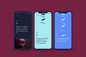 Die konzipierte App der Marke bietet dem Nutzer die Möglichkeit, auditiv und visuell angeleitet Teezeremonien auszuführen und erinnert den Nutzer an dafür günstige Zeitspannen im (Berufs-)Alltag. Somit wird das Ritual der Teezeremonie in den Alltag des Nutzers implementiert.