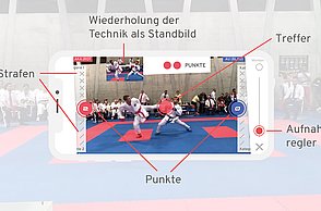 Das Hauptaugenmerk der Bachelorthesis „Regeln, Punkt, Sieg! - Karate - eine visuelle Hilfestellung“ liegt auf der Vermittlung von Regeln, um so ein Verständnis für den Kampfsport Karate zu schaffen. Motivation für das Thema ist das Karate Debüt bei den olympischen Spielen 2020 in Tokyo. Durch kurze und prägnante Animationen ist es dem Betrachter möglich sich näher mit dem Regelwerk zu befassen. Durch die Einbindung einer interaktiven Augmented Reality Funktion und die Platzierung virtueller Objekte in das Geschehen wird das Verständnis über die Regeln weiter gefestigt. Gleichzeitig fungiert die App als digitaler Karate-Pass, welche es Sportlern und Sportlerinnen ermöglicht, wettkampfrelevante Daten griffbereit auf dem Smartphone zu hinterlegen. Die Verbindung von Regelwerk, wettkampfrelevanten Informationen und der Kampfanalyse mittels sensorbasiertem Tracking bietet also nicht nur Laien, sondern auch erfahrenen Athleten eine hilfreiche und nützliche Plattform für Wettkampf und Training. Durch die Verwendung der App soll die erste Teilnahme bei den olympischen Spielen nicht die Letzte sein und nachhaltige Begeisterung für den Sport wecken.