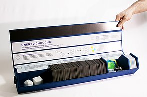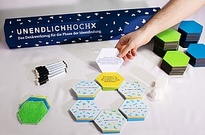 Das Denkwerkzeug UNENDLICHHOCHX unterstützt die kollektive Ideenfindung und schafft dabei Freiheit für neue Ideen. Das Denkwerkzeug beinhaltet sechs verschiedene Anwendungen die auf bereits bestehenden Kreativitätstechniken aufbauen und diese neu kombinieren. Die Techniken verhelfen den Nutzern zu einer Veränderung des Blickwinkels auf ihre individuelle Herausforderung. Eine produktive Form des Zusammenarbeitens wird ermöglicht und die Vielfalt der Ideen sowie die gemeinschaftliche Kreativität wird gesteigert.
