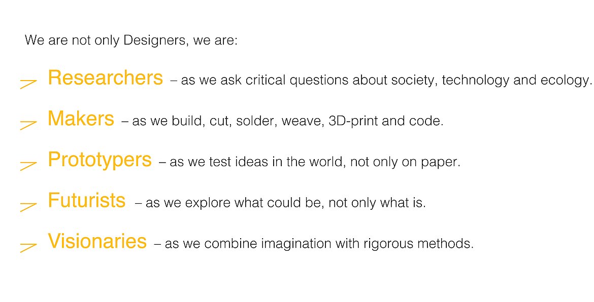 You want to explore what design can do for possible futures and push the possibilities and limits of making between craft and digital technologies.