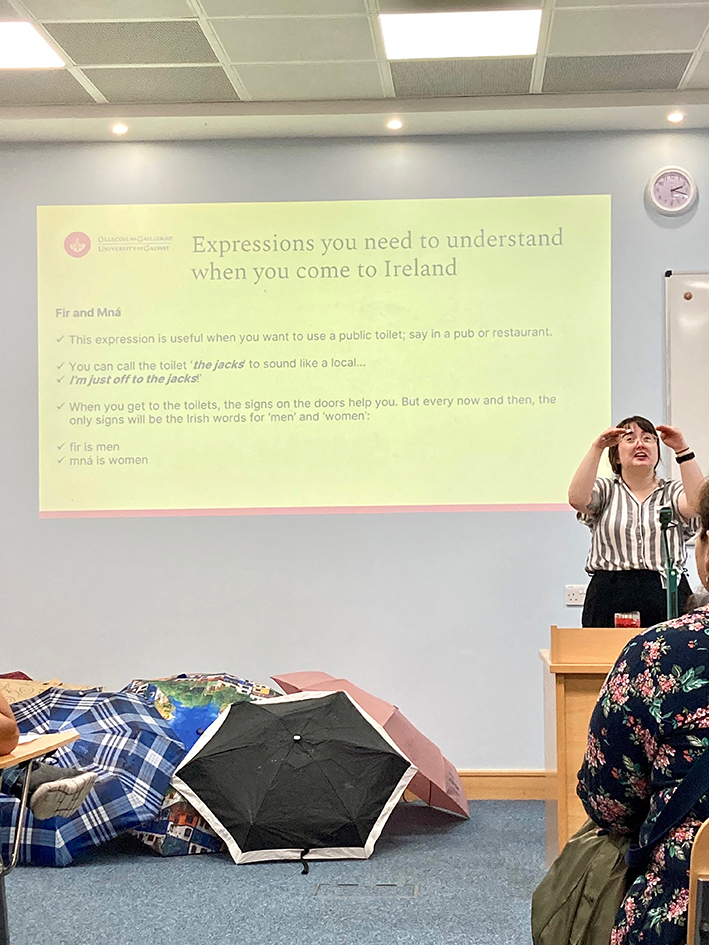 Galway ist eine eher kleinere Stadt an der Westküste und hat ca. 84 000 Einwohner*innen. Die University Galway ist im schönen historischen Stadtbild sehr präsent. In der Universität hatten wir uns jeden Vormittag in einem speziell auf die wissenschaftliche Hochschulsprache zugeschnittenen Englisch weitergebildet. Hier gab es spannende Begegnungen mit anderen Hochschulangehörigen aus Italien, Estland, Finnland, Frankreich Slowakei, Schweden, Spanien oder Ungarn. Dieser Austausch war sehr bereichernd, wir konnten viel aus dem Hochschulalltag anderer europäischer Länder und deren Forschungsschwerpunkte erfahren. Abends haben wir gemeinsam mit den Spaniern oder Slowakinnen die Pubkultur erkundet. Wir konnten uns von sehr gutem Essen, Livemusik und der Herzlichkeit der irischen Bevölkerung überzeugen.