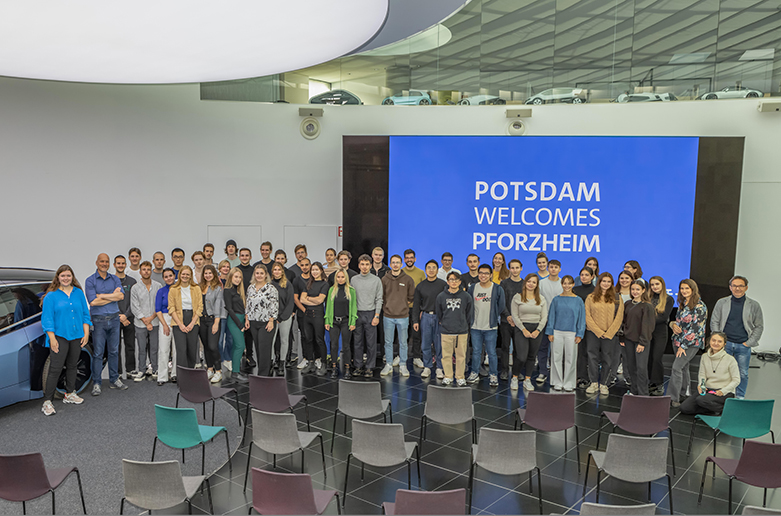 Wie geht man vor, wenn etwas ganz Neues entstehen soll? In Teams mit verschiedenen Perspektiven arbeiten und Fragen stellen – und zunächst einmal gemeinsam nach Potsdam fahren. Im Volkswagen Future Center Potsdam haben Studierende, Lehrende und Mitarbeiter*innen von VW die genaue Positionierung der Marke und des Fahrzeugsegments gemeinsam definiert. Begleitet wurde das Projekt von Peter Wouda, selbst Pforzheimer Absolvent und Design Director der VW-Gruppe und VW-Design-Stratege Sebastian Brunner. Neben dem eigentlichen Fahrzeug waren Konzepte zu Mobility Services, Charging, Retail, Merchandise und Marketing gefragt.