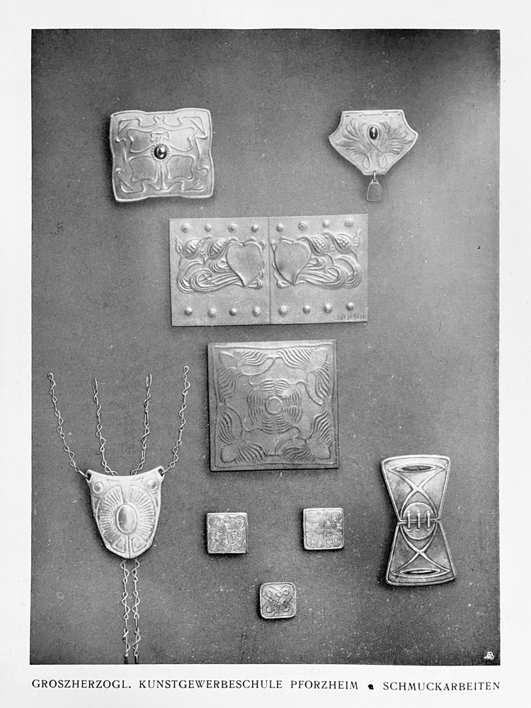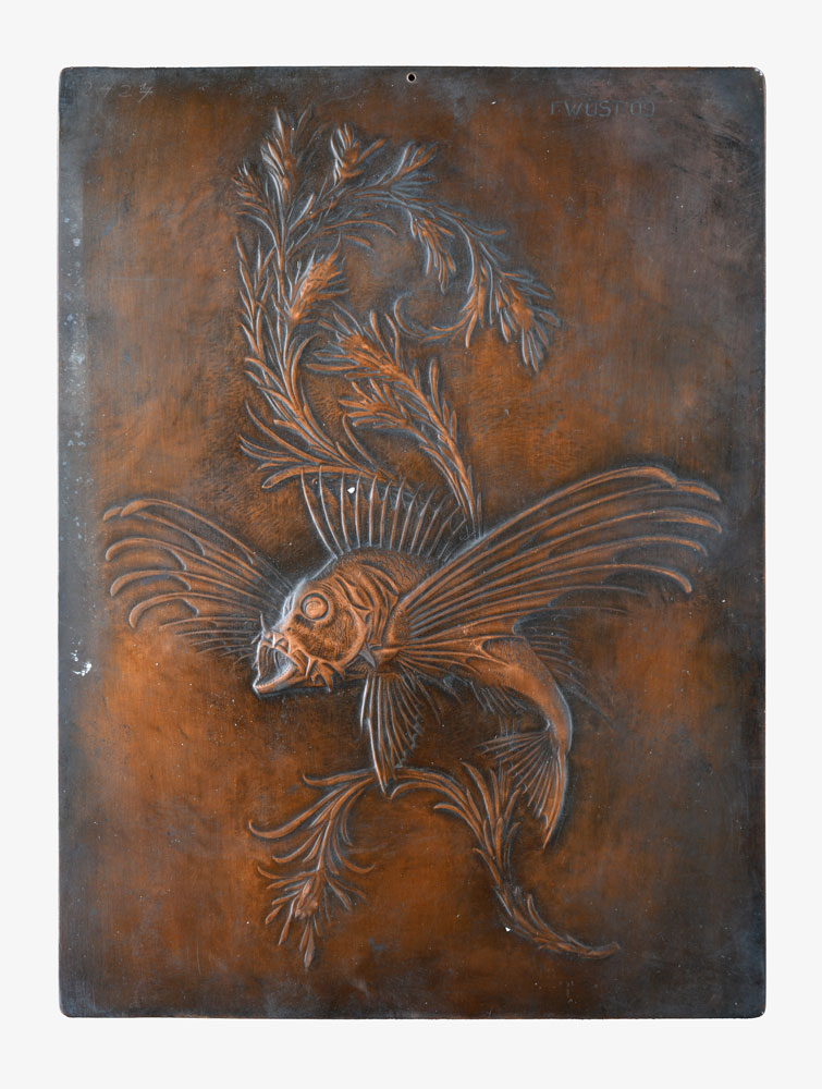 Tiere gewannen gegen Ende des 19. Jahrhunderts zunehmend an Bedeutung als Motive für das Kunstgewerbe. Die Treibarbeit „Fisch“ des Pforzheimer Kunstgewerbeschülers Friedrich Wüst entstand 1909 im Unterricht von Adolf Schmid. Als Vorlage wurde ein Blatt aus dem Mappenwerk „Das Thier in der decorativen Kunst“ von Anton Seder aus dem Jahr 1896 verwendet. Objekt und Vorlage haben sich in der Sammlung der Fakultät für Gestaltung und im Stadtarchiv Pforzheim erhalten.