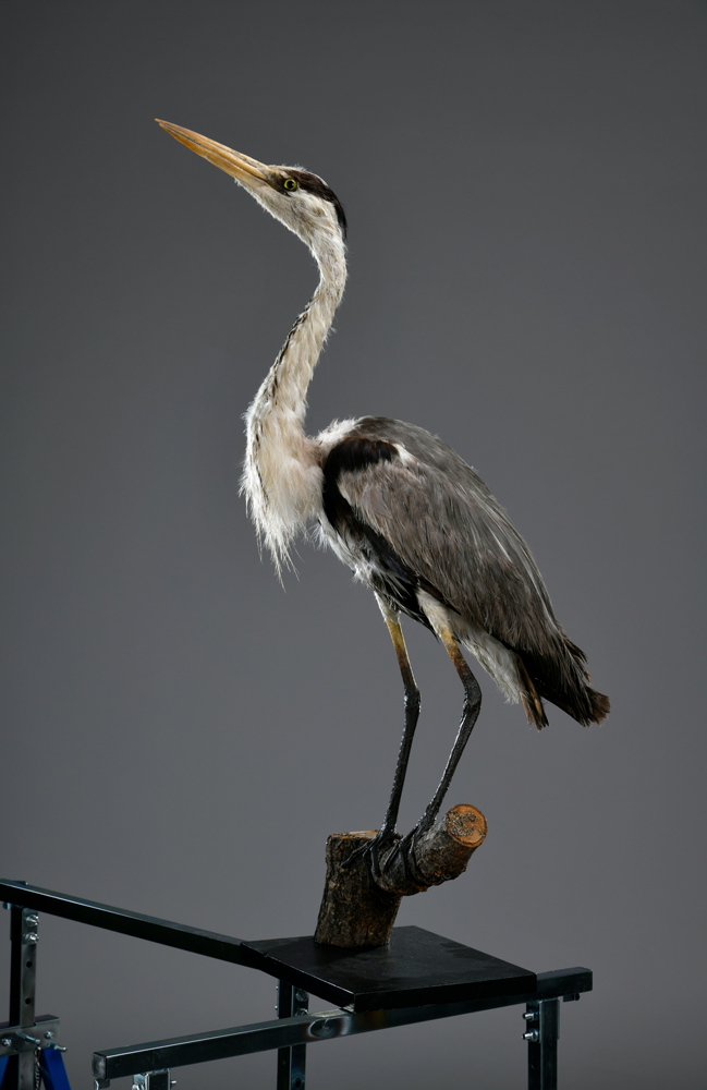 Der Graureiher steht stellvertretend für die rund 850 taxidermischen Tierpräparate, die zur historischen Lehrmittelsammlung der Kunstgewerbeschule Pforzheim gehörten. Zugleich repräsentiert der Fischreiher die Kunstgattung der Tiermalerei. Einer ihrer bedeutenden Vertreter im vergangenen Jahrhundert war Erwin Aichele (1887–1974), der von 1940 bis 1952 an der als Kunstgewerbeschule gegründeten Institution das Zeichnen und Malen nach Naturvorbildern sowie lebenden Tieren und Pflanzen unterrichtete. Bis heute ist das Naturstudium ein wesentlicher Bestandteil der künstlerischen Grundlagenausbildung an der Hochschule Pforzheim.
