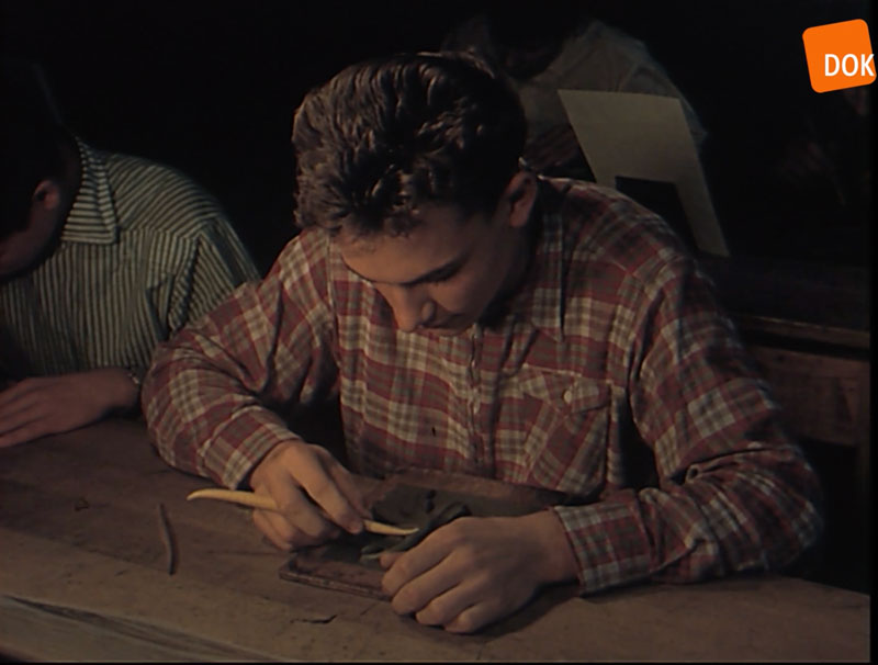 Der aus dem Jahr 1960 ohne genaue Datierung stammende Ausschnitt aus der Sachdokumentation „Unterrichtsproben und Ausschnitte aus dem Werkstattunterricht in der Goldschmiedeschule Dillweißenstein“ (Archivnummer LFS001923) liefert einen zeitgenössischen Blick auf didaktische Konzepte und Bildungsideale sowie die Ausstattung von Lehrwerkstätten im Pforzheimer Unterrichtswesen. Klassischerweise dienen Lehr- respektive Instruktionsfilme als nichtfiktionales Genre primär der systematischen Vermittlung von Wissen und Fertigkeiten und adressieren ein klares Zielpublikum (Schüler:innen, Studierende oder Fachkräfte). Lehrfilme wurden in Deutschland oft durch Kreis- und Landesbildstellen, aber auch durch Institutionen der Berufs-, Handwerks- und Industrieverbände verliehen, spielten in der Branchenpresse aber keine Rolle. Sie wurden weder kommerziell ausgewertet noch beworben, was die heikle Quellenlage zur Erforschung erklärt.
