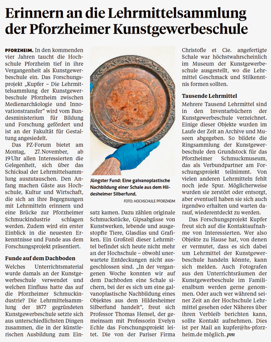 Die Lehrmittelsammlung an der Fakultät für Gestaltung der Hochschule Pforzheim steht sowohl für eine weltweit ausstrahlende Designausbildung als auch für internationale Wirtschafts- und Gesellschaftsgeschichte. Obwohl stark in Vergessenheit geraten, ist sie einzigartig hinsichtlich der Vielfalt ihrer Lehrmedien, des Innovationsgrades ihrer medialen Didaktik und der Fokussierung auf die Edelmetallindustrie. Das Projekt trägt dieser Besonderheit mit zwei Schwerpunkten Rechnung: