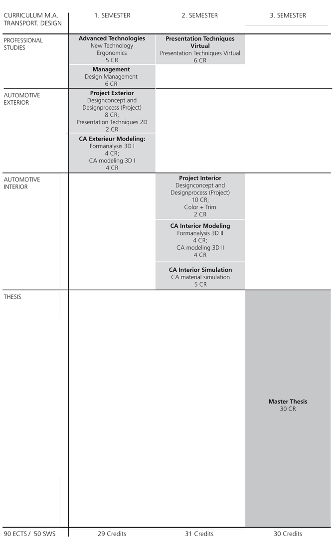 1. Im Modul ‚Professional Studies‘ werden auf den Fahrzeugentwurf spezialisiertes und für diesen typisches theoretisches Wissen sowie automotiv-typische Darstellungstechniken vermittelt. Insbesondere für den Industrial Designer*innen beinhaltet dieses Modul die bis dahin noch nicht bekannten fahrzeugspezifischen Methoden und Kenntnisse.