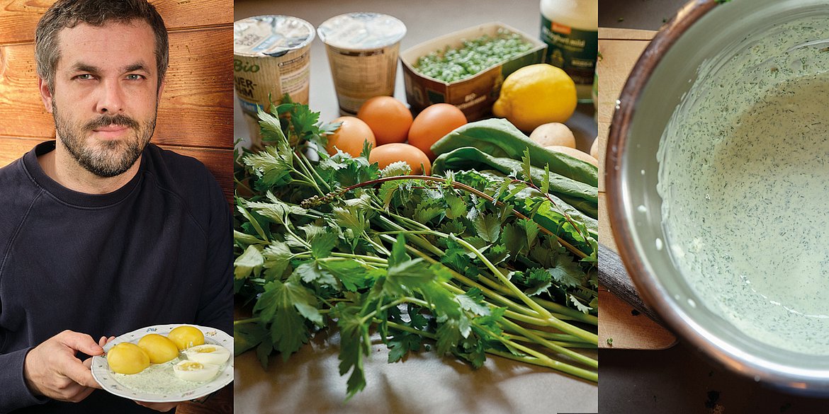 „Als geborener Frankfurter liebe ich die hessische Grüne Soße, denn sie ist ehrlich und bodenständig. Die Mischung aus frischen Kräutern bringt eine Frische auf den Teller, wie man sie selten findet. Für mich ist sie untrennbar mit Kindheit, Frühling und Familienzeit verbunden.