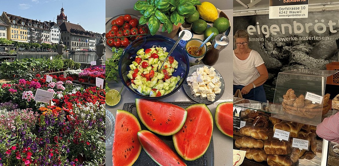 „Was auf den Tisch kommt, ist bei mir initial oft durch kleine Dinge inspiriert. An einem heißen Tag wie heute wird es ein spezielles Brot frisch vom Markt in meiner Wahlheimat Luzern sein, das mich zur restlichen Menügestaltung animiert. Der Luzerner Wochenmarkt beidseitig des Reussufers geniesst dank der Vielfalt aus Innerschweizer Spezialitäten und einer gewissen Italianità durch die aus dem Tessin und Norditalien (der A2 sei Dank!) anreisenden Händler Kultstatus.