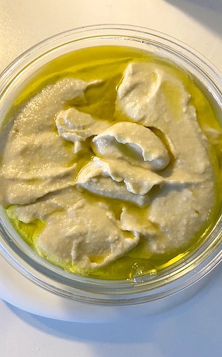 Dazu passt Hummus: Weiche die Kichererbsen 12 Stunden ein. Abspülen und frisches Wasser dazugeben. Am besten im Schnellkochtopf 30 Minuten weich kochen. Im Mixer oder mit dem Pürierstab mit reichlich Zitronensaft, Salz, Tahini (Sesampaste), Kreuzkümmel, Kurkuma, einer getrockneten Chili und Knoblauch fein pürieren. Falls vorhanden einen Schuss geröstetes Sesamöl dazu geben. Abschmecken. Auf dem Teller mit Olivenöl beträufeln.