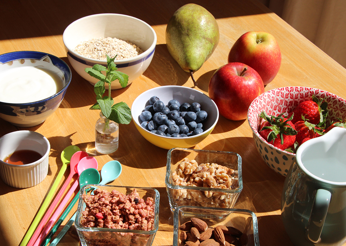 - Platziert die Zutaten auf Schalen auf dem Tisch.